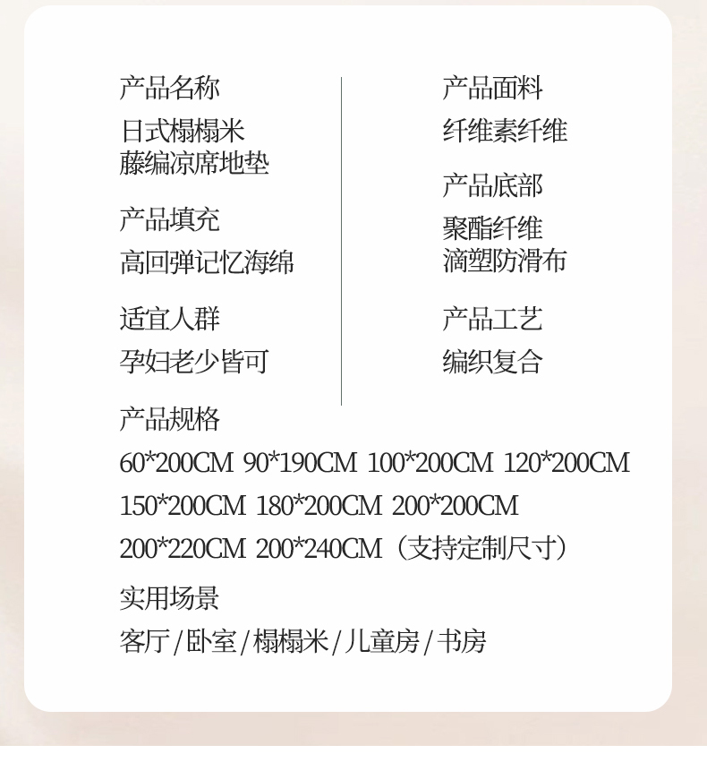 当前位置: 91家纺网 > 商品网购 > 床上用品 > 凉席 > 竹席 > (买家秀)(爆款花型 不断货)藤席地垫日式榻榻米床边垫子打地铺睡觉凉席藤席凉席床垫软垫学生宿舍床垫 步步高(学生床)