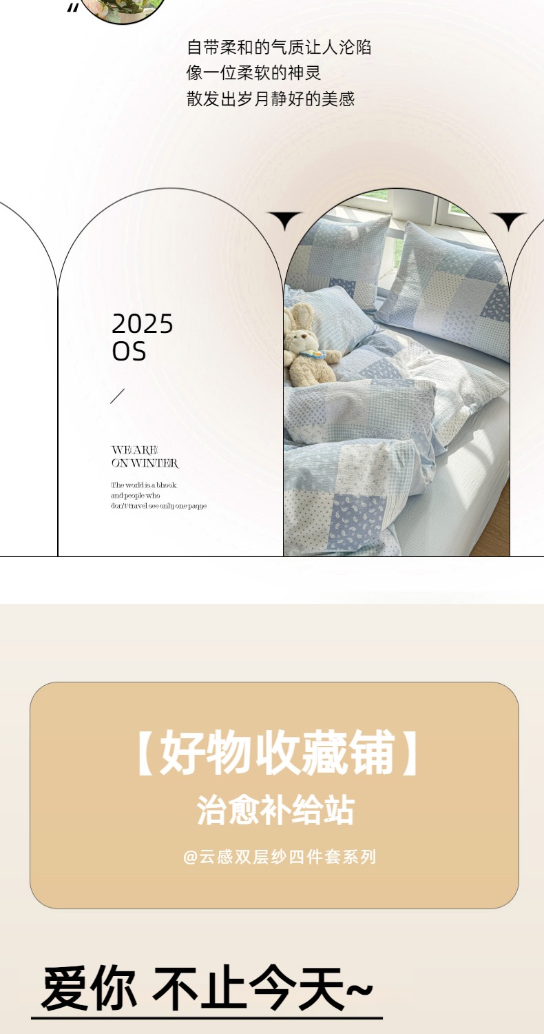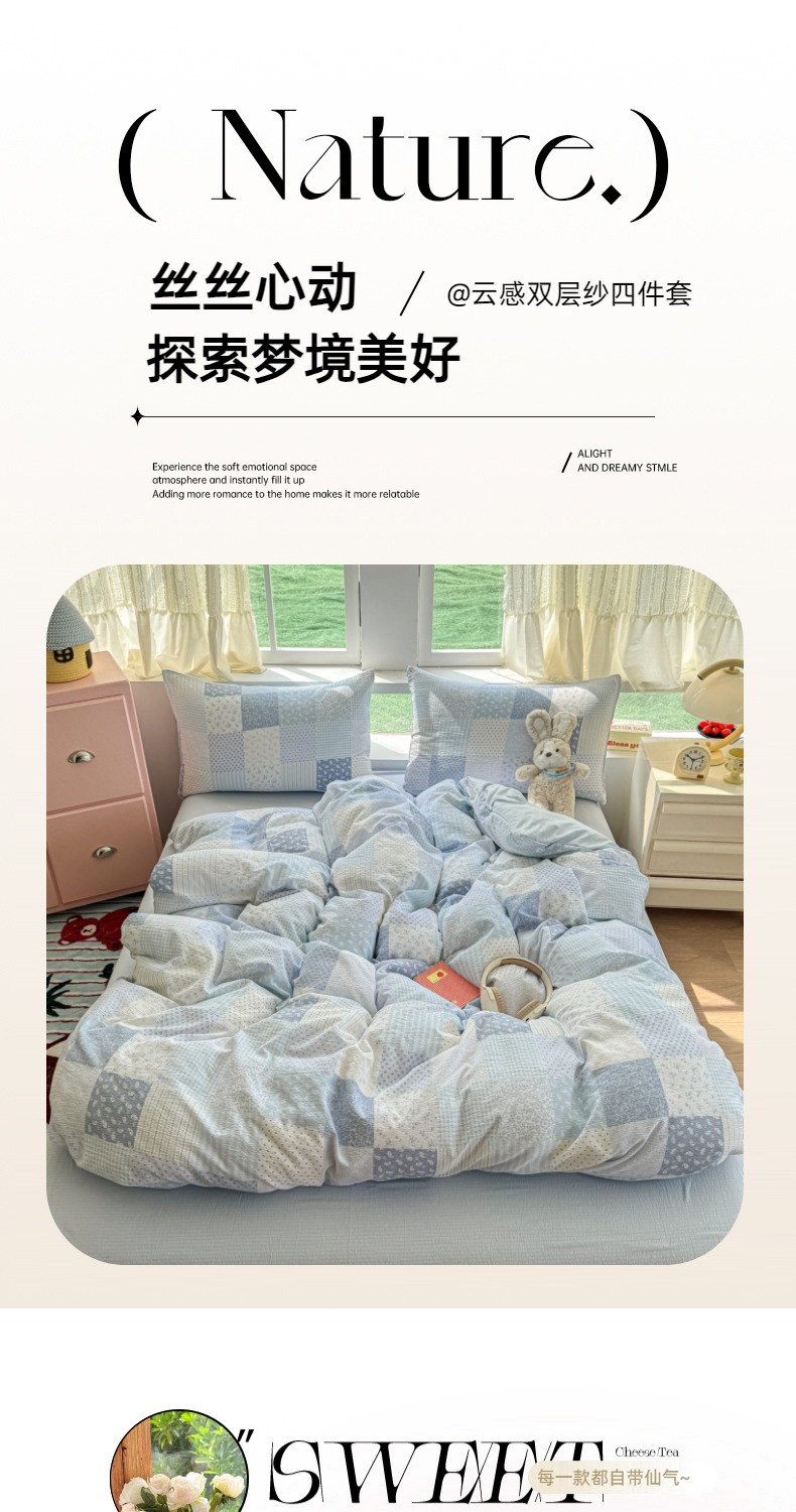 当前位置: 91家纺网 > 商品网购 > 床品套件 > 四件套 > 双层纱四件套 > 艾特你 2025新款云感针织双层纱四件套 半亩花田