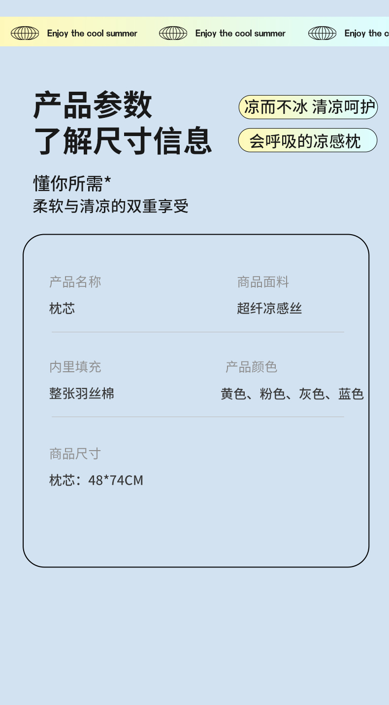 当前位置: 91家纺网 > 商品网购 > 枕头/枕芯/保健枕/颈椎枕 > 普通枕芯 > 珍贝家纺 2025夏季新款亲肤舒适冰丝凉感定形枕头枕芯 冰丝凉感-浅灰 48x74cm低枕/只