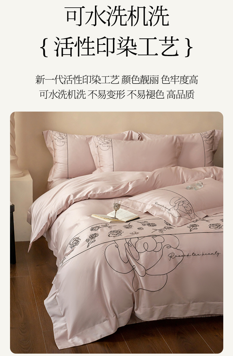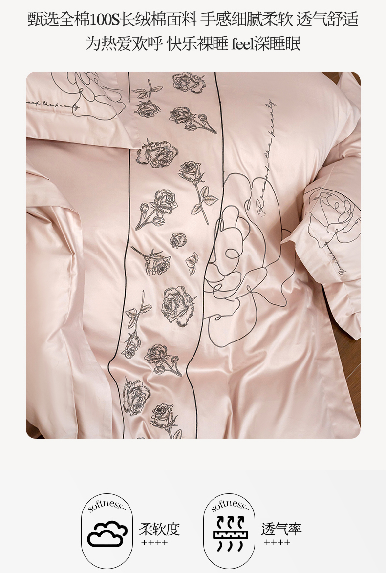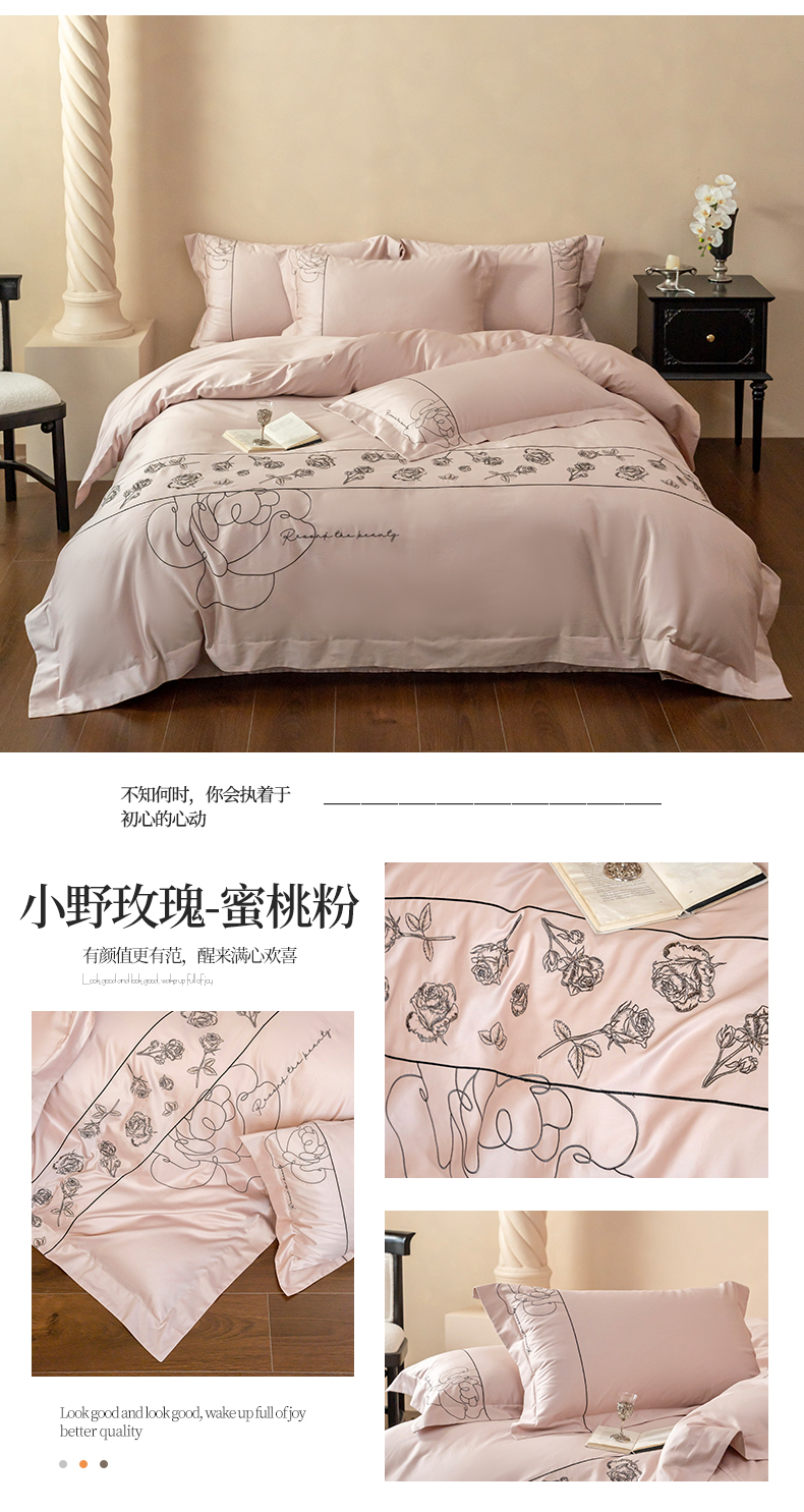 当前位置: 91家纺网 > 商品网购 > 床品套件 > 四件套 > 全棉普通四件套 > 艾莱家纺 2025春夏新款A类100S长绒棉全棉纯棉四件套-小野玫瑰 小野玫瑰-蜜桃粉