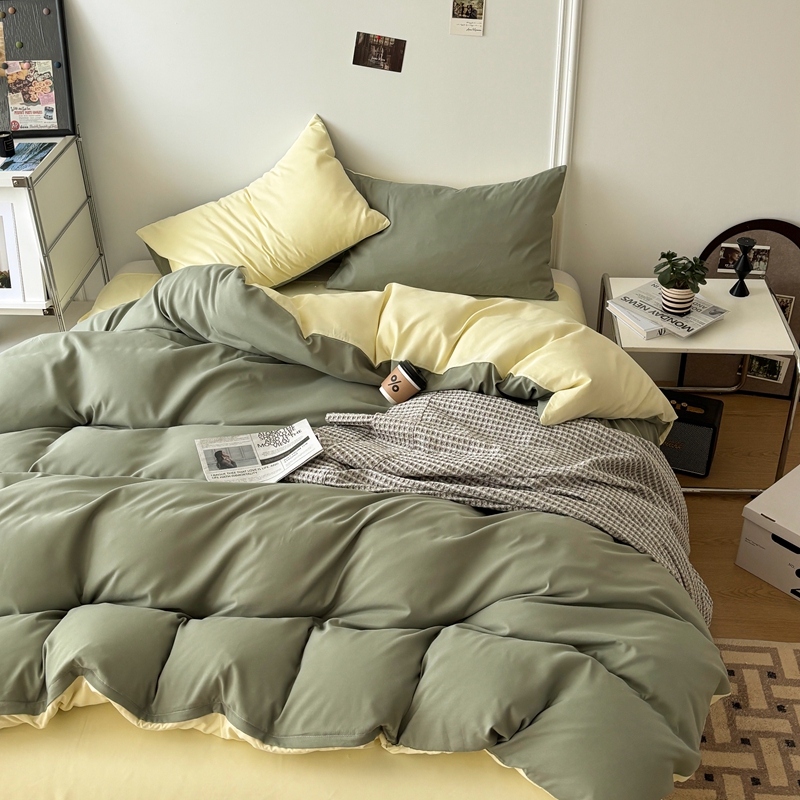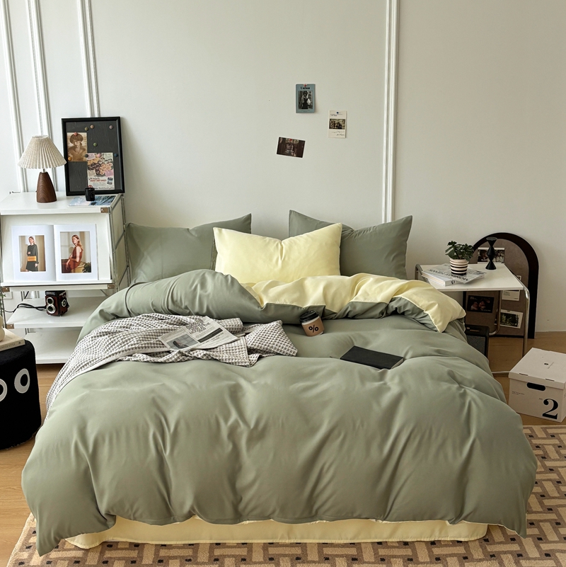 • 91家纺网 家纺一手货源 找家纺 百花王 2025新款亲肤舒适简约纯色水洗棉四件套 抹茶奶油