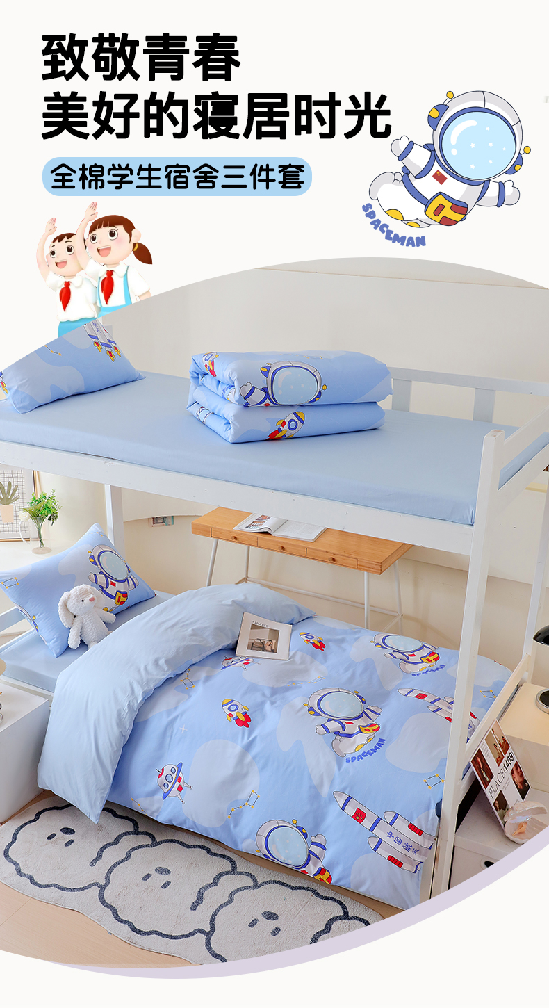 当前位置: 91家纺网 > 商品网购 > 床品套件 > 四件套 > 全棉普通四件套 > 金鑫汇家纺 2025新款印花花型-学生上下铺三件套 星际穿越
