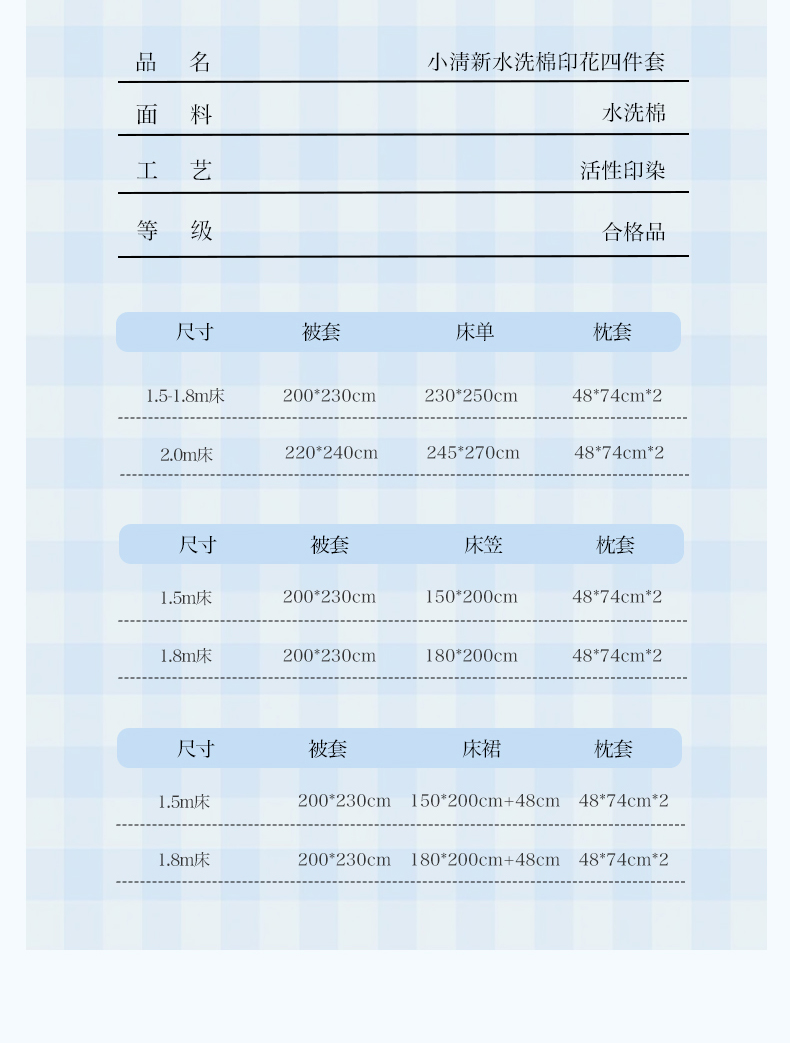【床笠款】1.8四件套-被套200x230 | ¥90.00 |