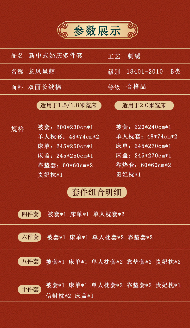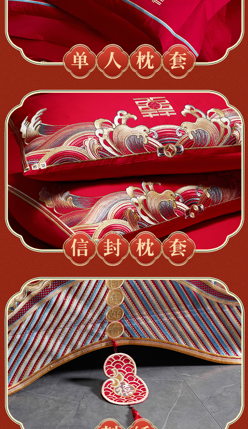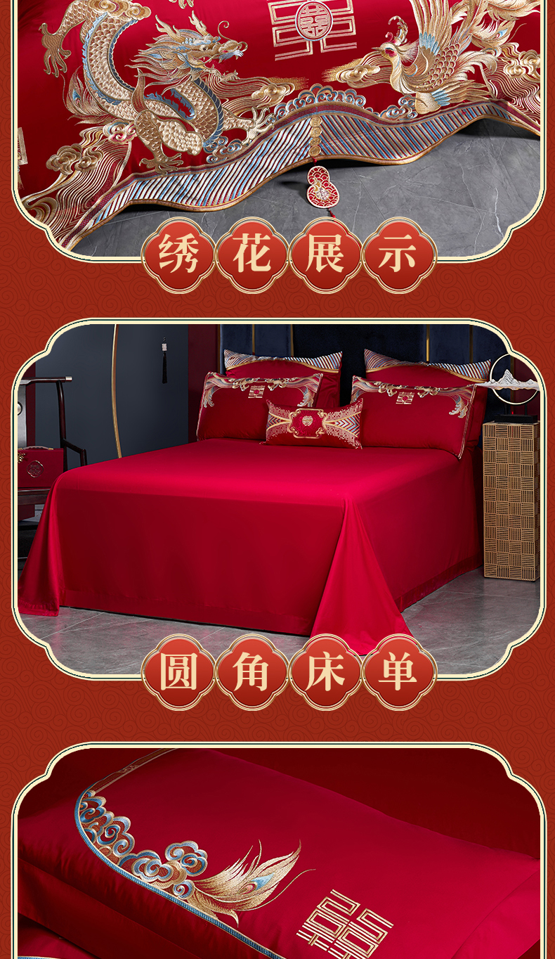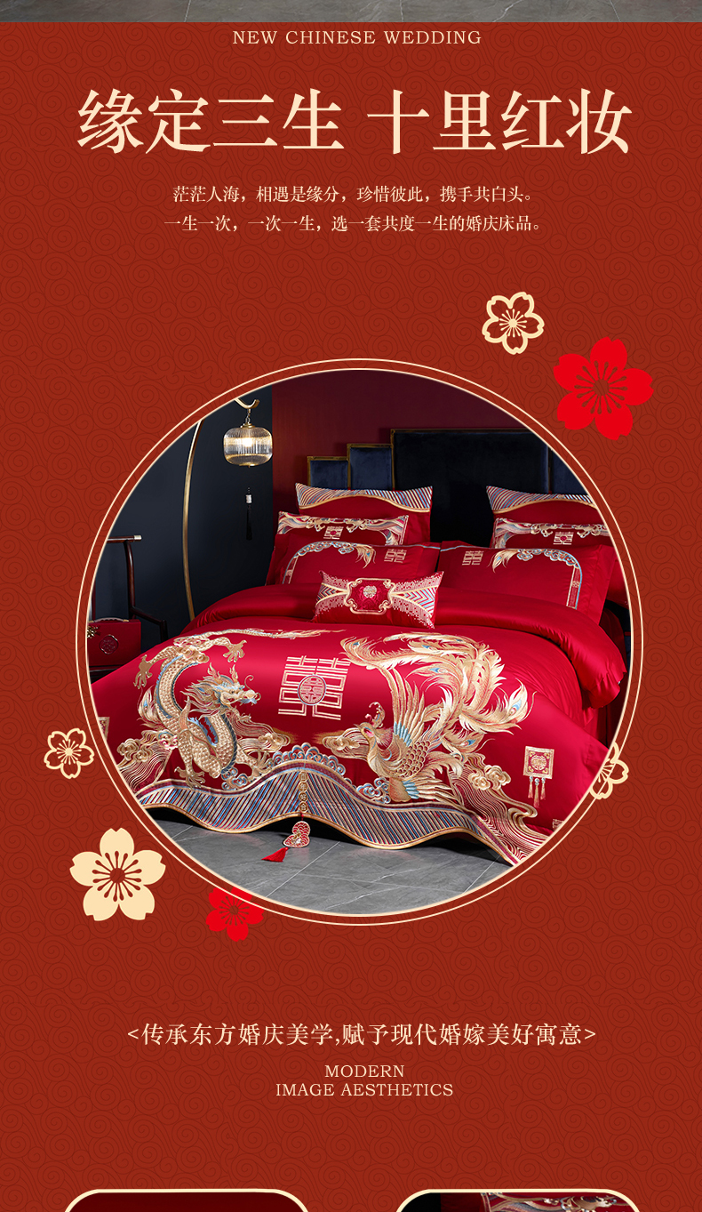 当前位置: 91家纺网 > 商品网购 > 床品套件 > 多件套 > 多件套 > 用心 2025新款长绒棉刺绣新中式婚庆多件套系列 龙凤呈囍