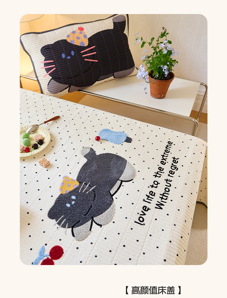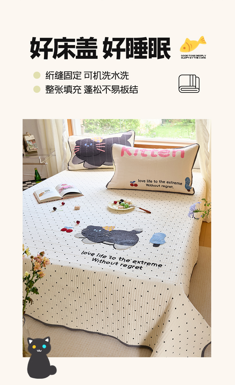 当前位置: 91家纺网 > 商品网购 > 床品套件 > 三件套 > 鑫喜莱家纺 2025新款毛巾绣云朵棉床盖三件套 胖猫