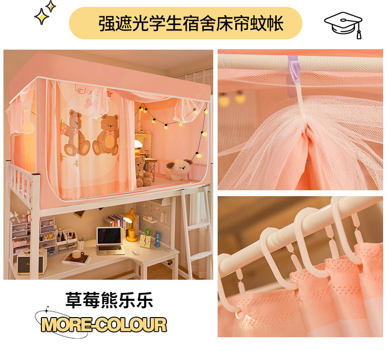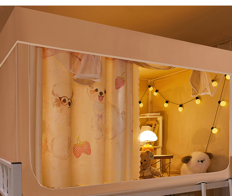 水妙家纺 2025年新款强遮光学生上下铺床帘蚊账 欢乐小狗