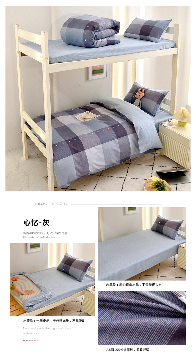 (总)水妙家纺 2025年新款A类全棉纯棉学生宿舍上下铺床垫套六件套三件套,床垫套安德鲁-蓝,床垫套布格熊-蓝,床垫套玛奇朵-灰,床垫套猫达人,床垫套念初-蓝,床垫套星耀皇冠-灰,床垫套宇格-蓝