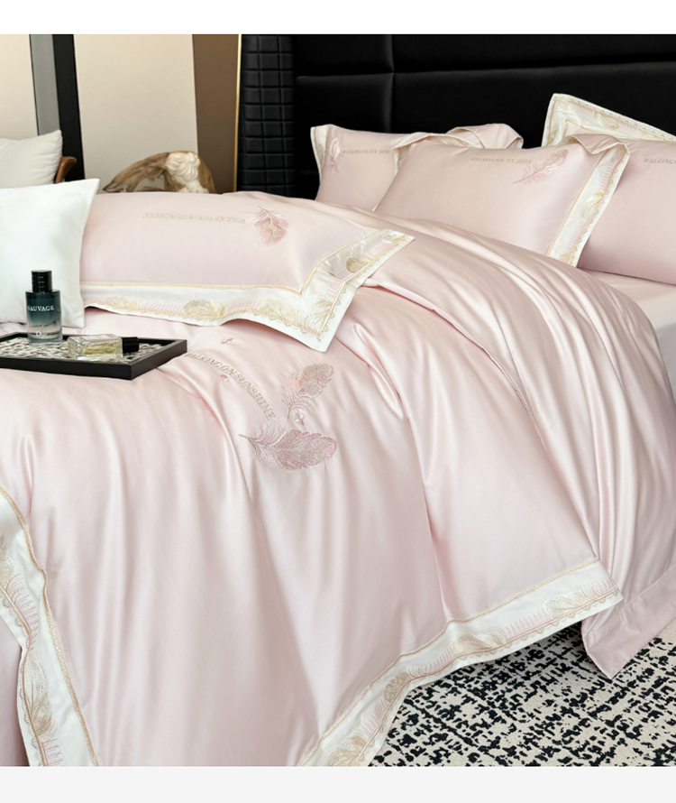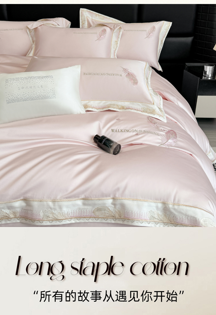 当前位置: 91家纺网 > 商品网购 > 床品套件 > 四件套 > 贡缎全棉四件套 > 高档礼盒装50*50S贡缎长绒棉刺绣四件套100%纯棉全棉床单床笠款量大价优 塞纳河畔-粉-贡缎长绒棉