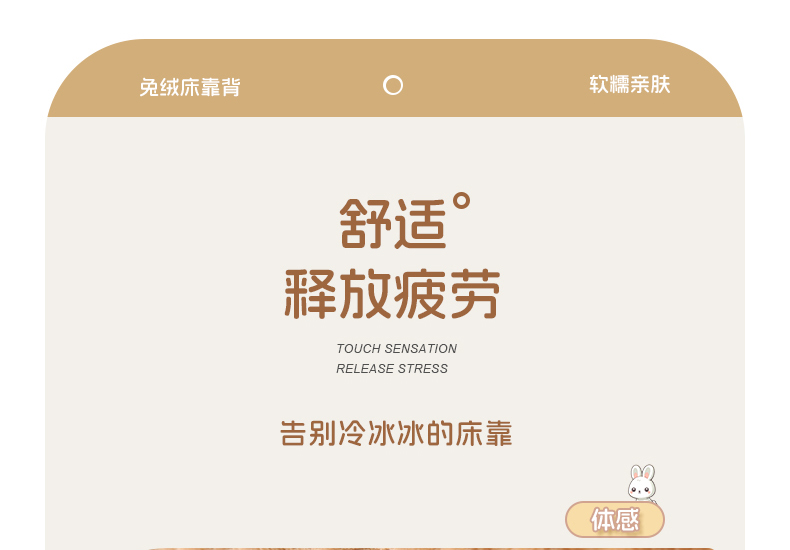 商品名称:永光家居 2025新款兔兔绒撸猫感靠背 床头靠垫抱枕床上软包(不供多多) 兔绒 浅棕