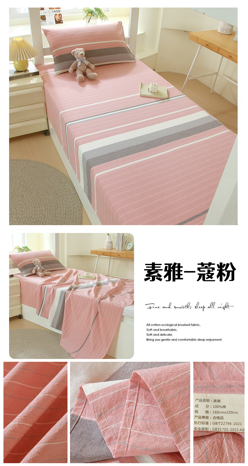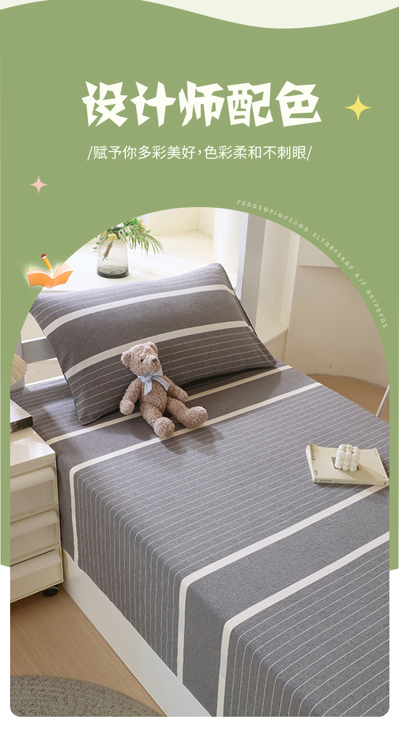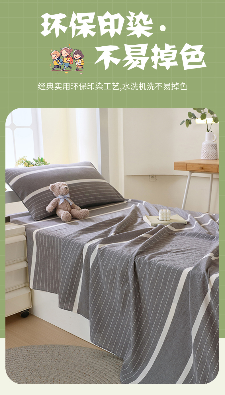 商品名称:春皖家纺 2025新款学生季全棉纯棉色织AB版水洗棉单品系列-单床单 床单单件 素雅-灰条