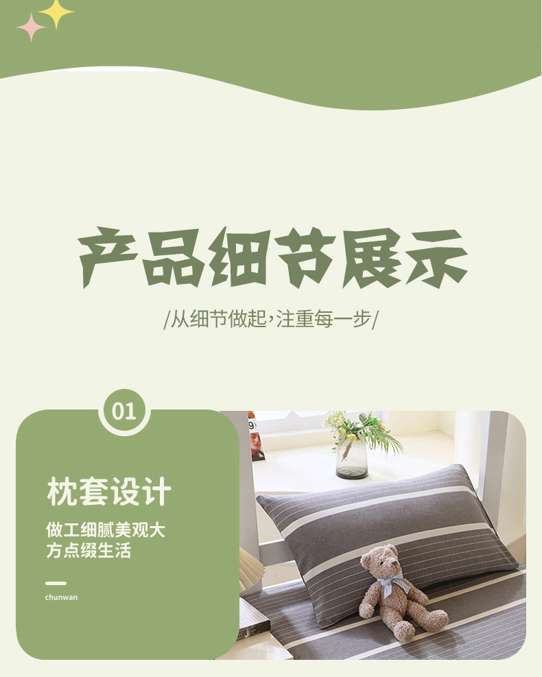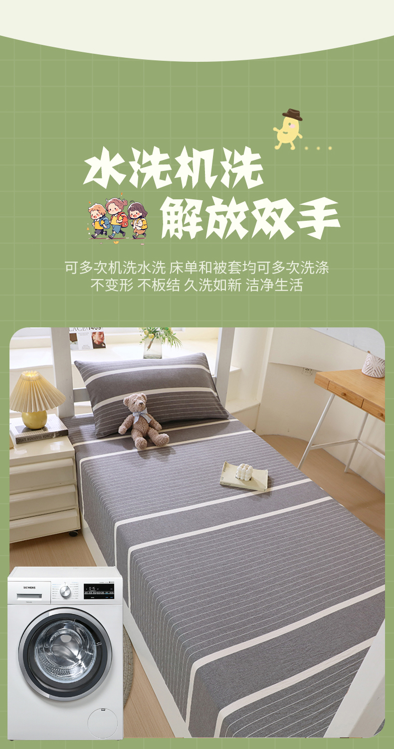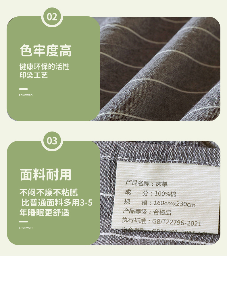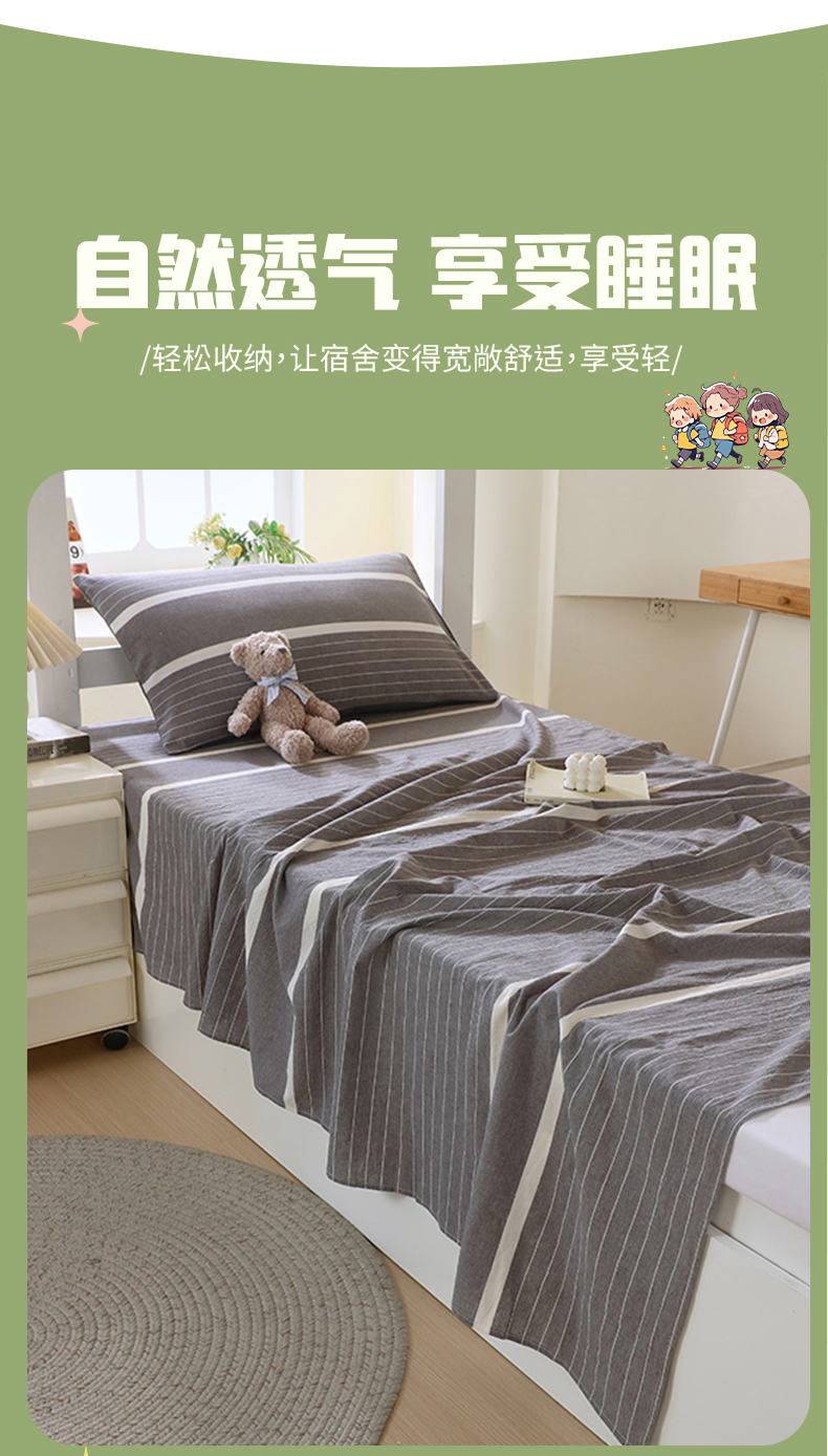 商品名称:春皖家纺 2025新款学生季全棉纯棉色织AB版水洗棉单品系列-单床单 床单单件 素雅-灰条