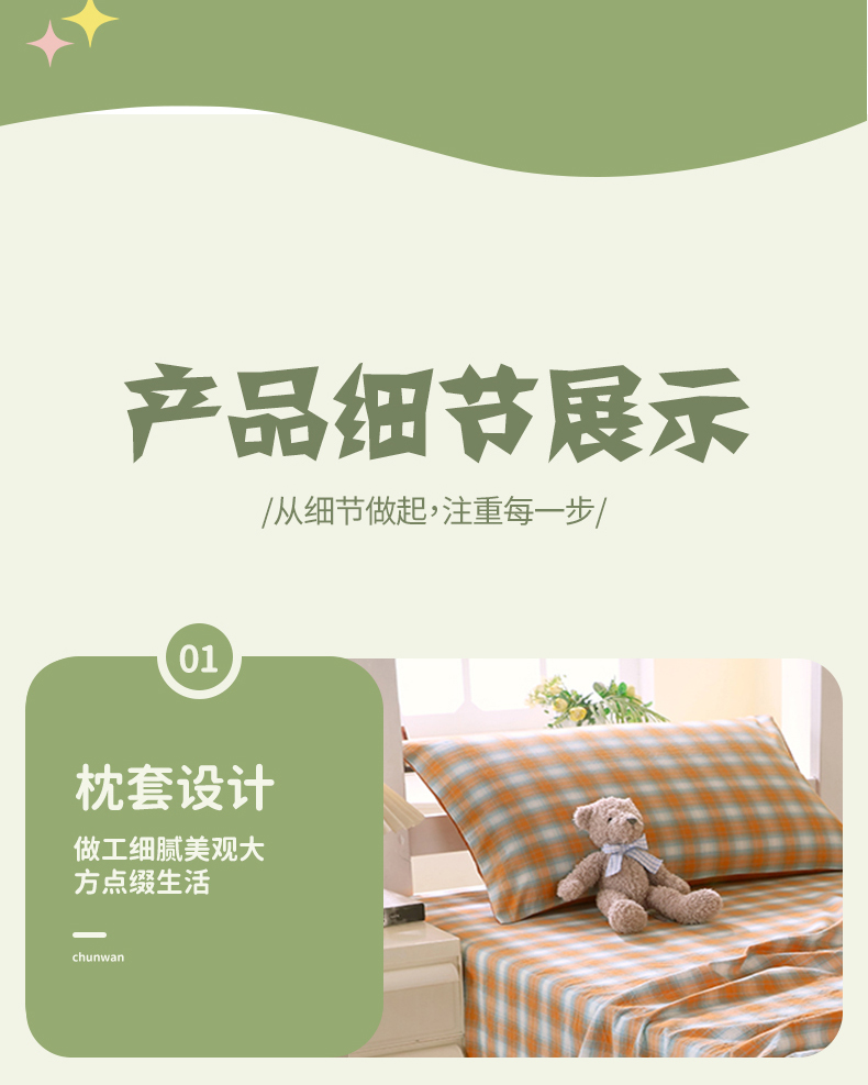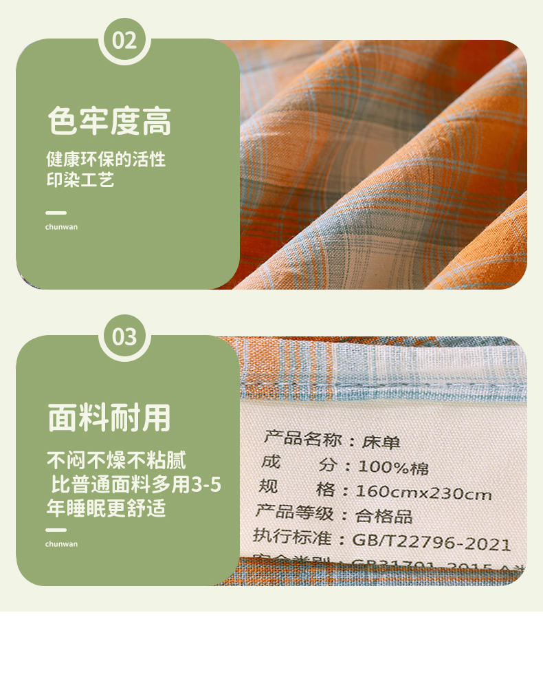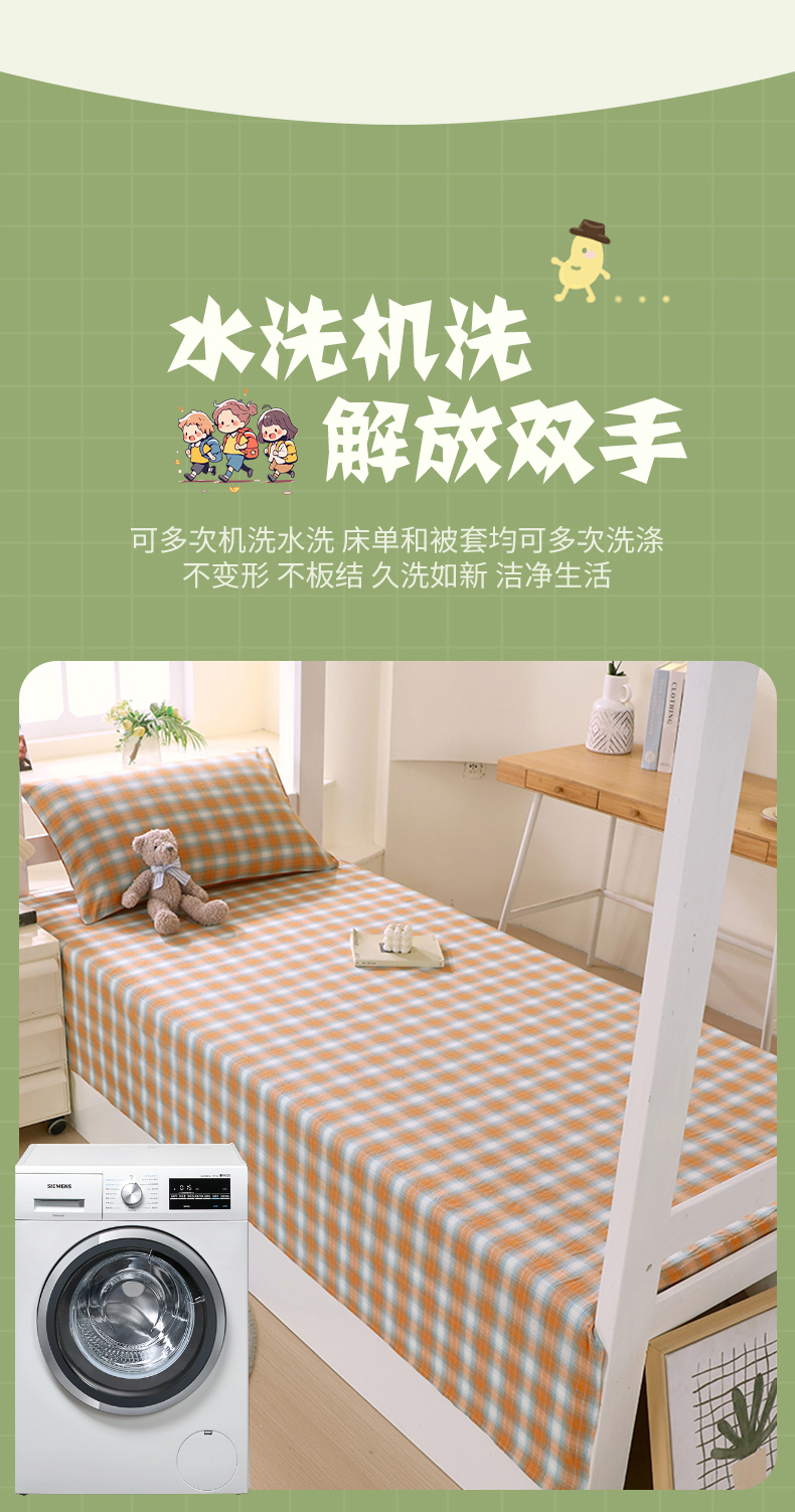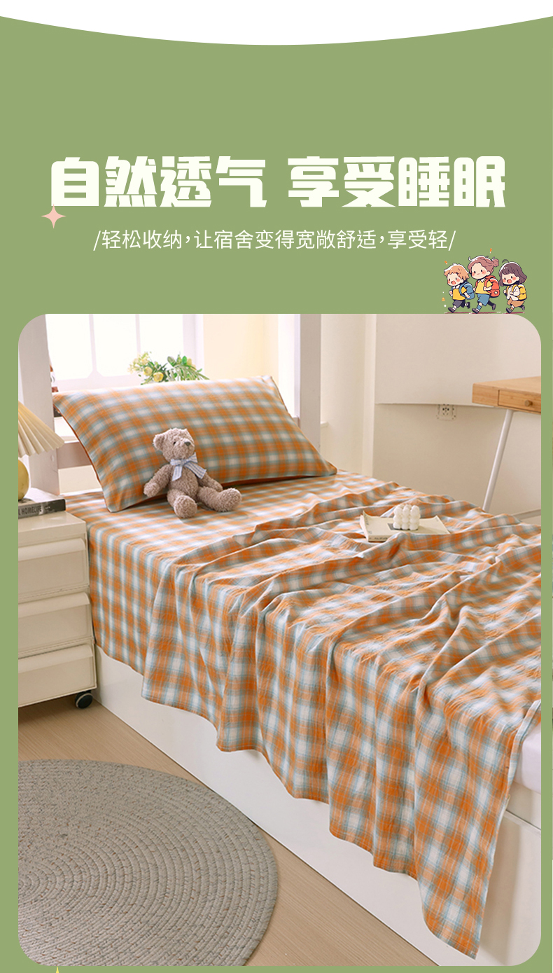 商品名称:春皖家纺 2025新款学生季全棉纯棉色织AB版水洗棉单品系列-单床单 床单单件 素雅-沐夏