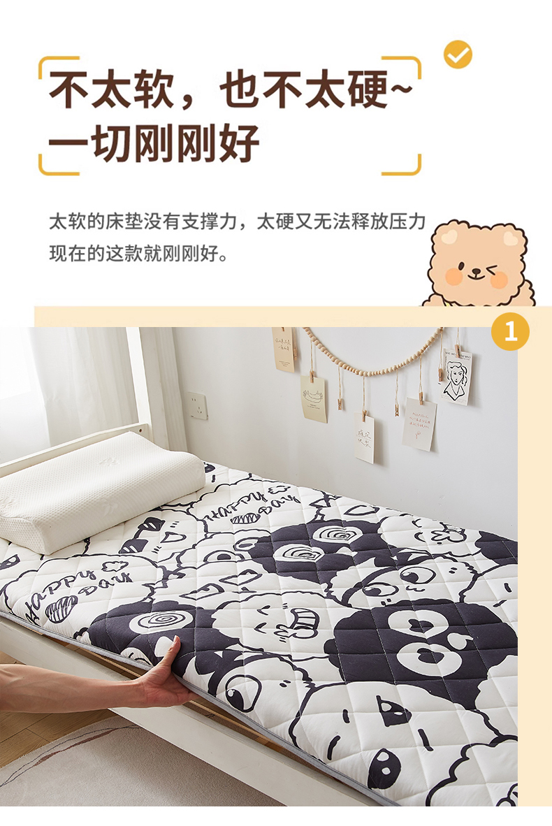 • 91家纺网 家纺一手货源 找家纺 暖季家纺 2025新款磨毛印花亲肤学生床垫 煤球精灵