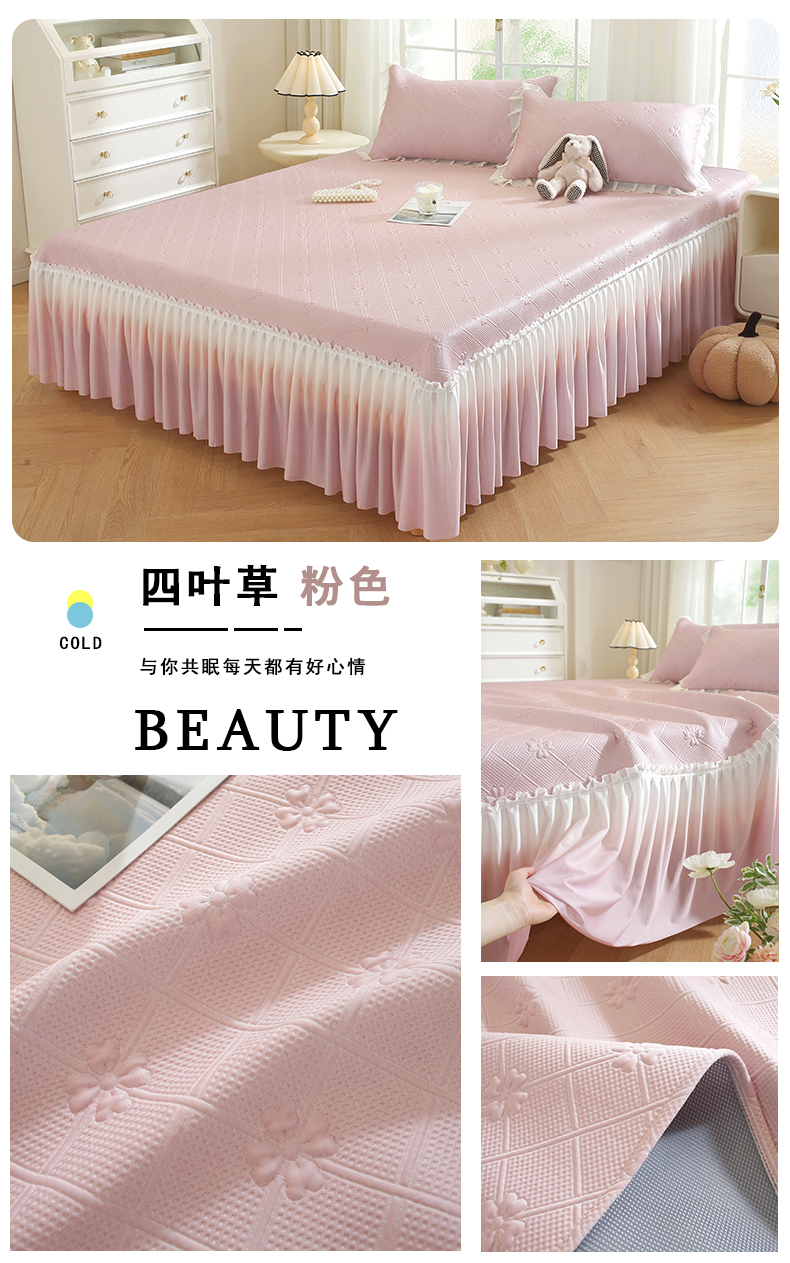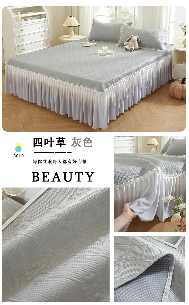 商品名称:共鸣沙发垫 2025新款凉感四叶草床裙款凉席席子 床裙四叶草灰色