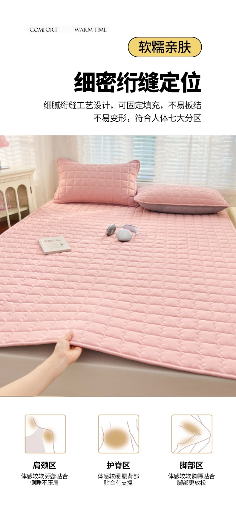 当前位置: 91家纺网 > 商品网购 > 床垫/床褥 > 普通床垫 > 圣比熊 2025新款云感双层纱夹棉床褥床护垫床垫保护垫学生宿舍专用三件套 告白粉