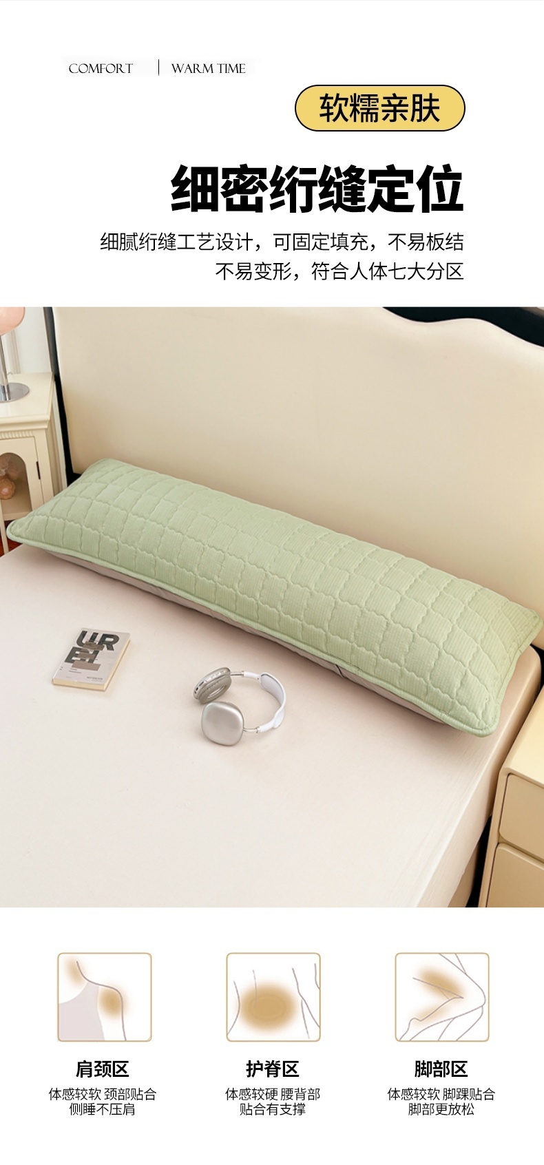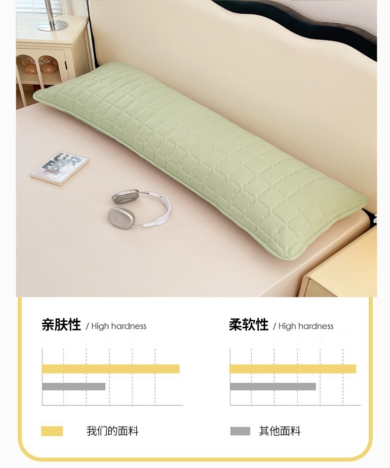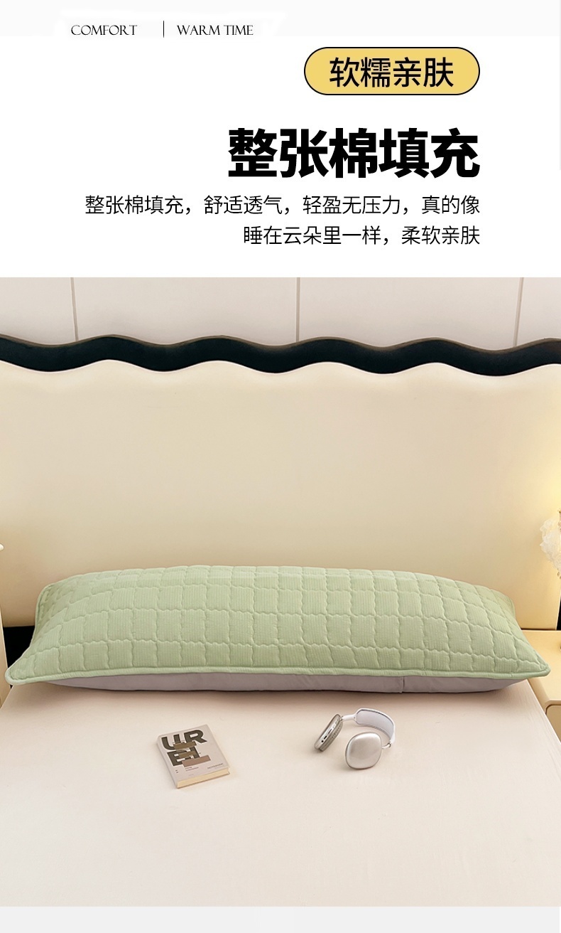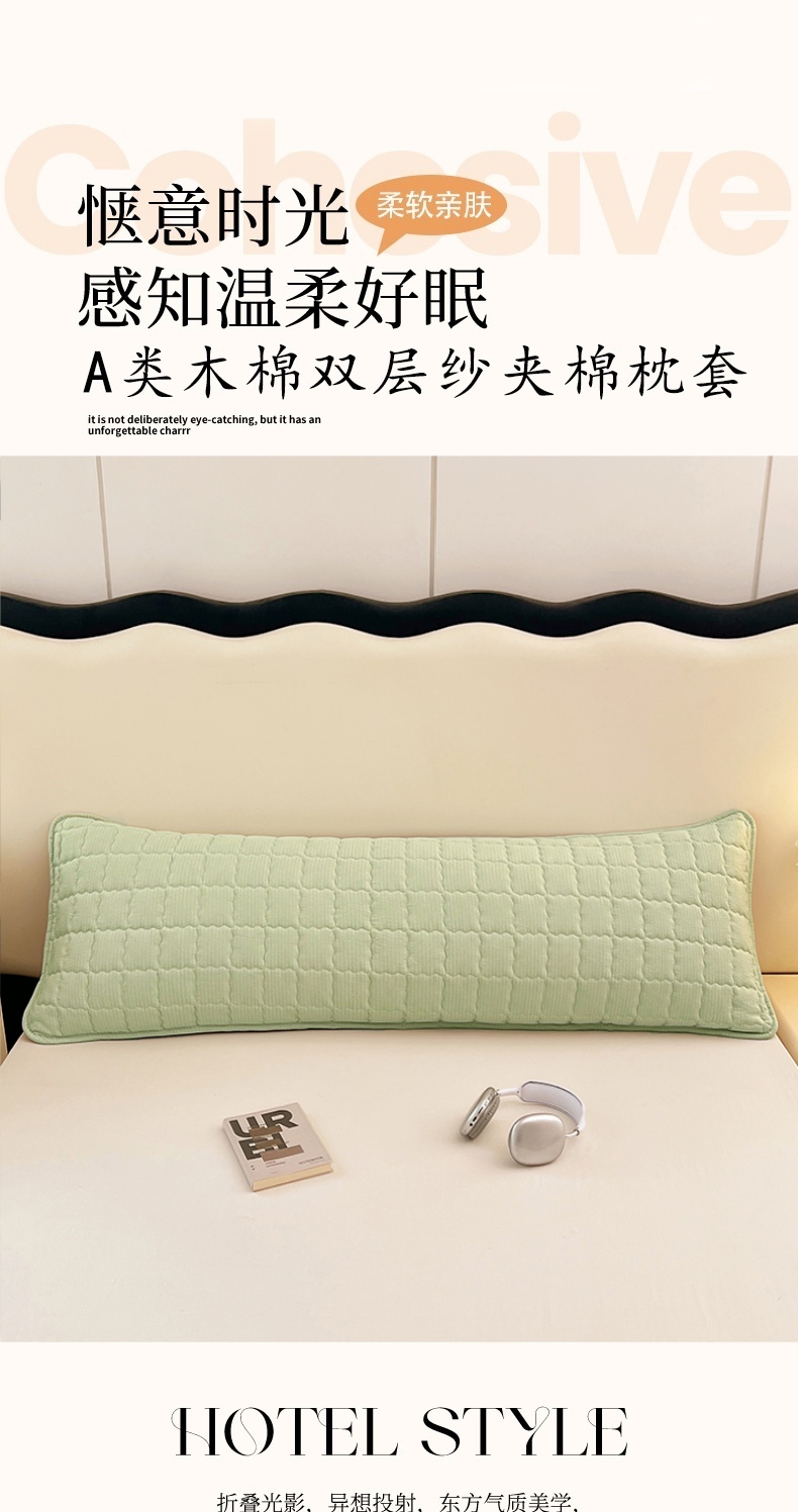 商品名称:圣比熊 2025新款云感双层纱夹棉双人枕套情侣1.5m枕芯套1.8床加厚枕头套 抹茶绿