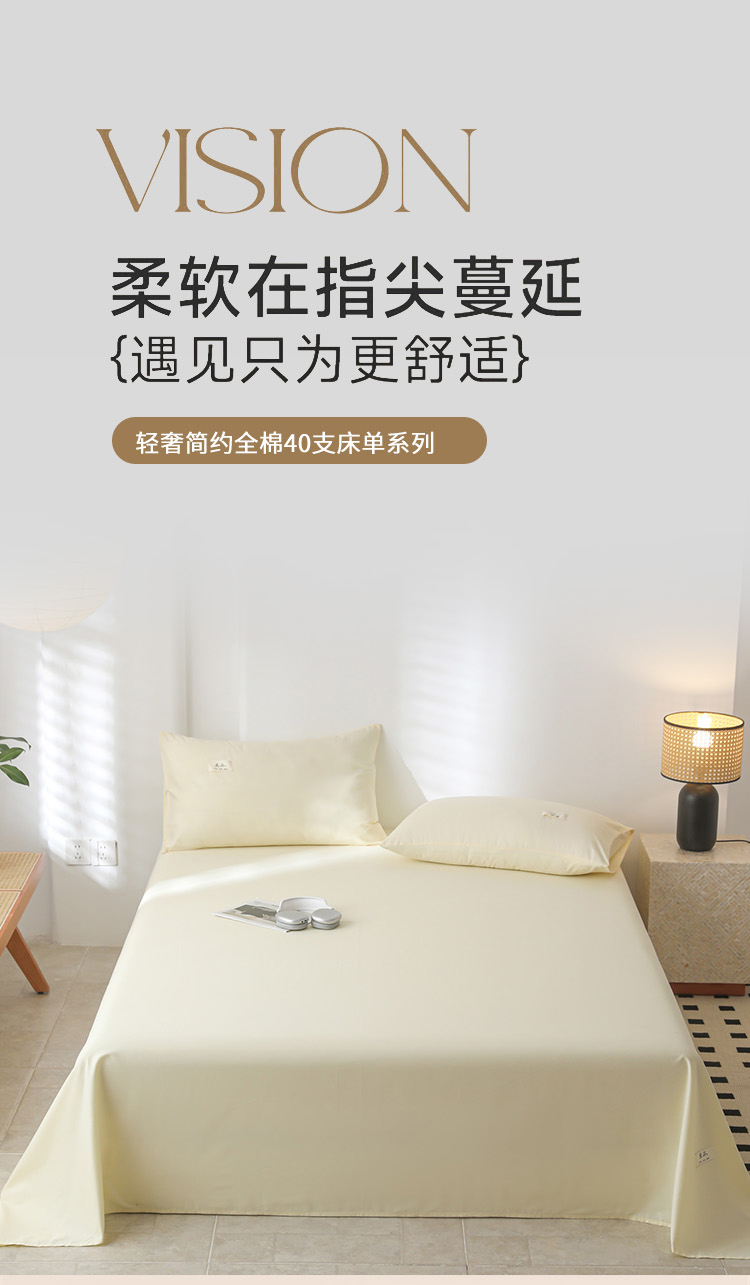 当前位置: 91家纺网 > 商品网购 > 床上用品 > 床单 > 眠博士 2025新款轻奢简约40s全棉纯棉纯色单床单 床单单件 40支床单-浅黄