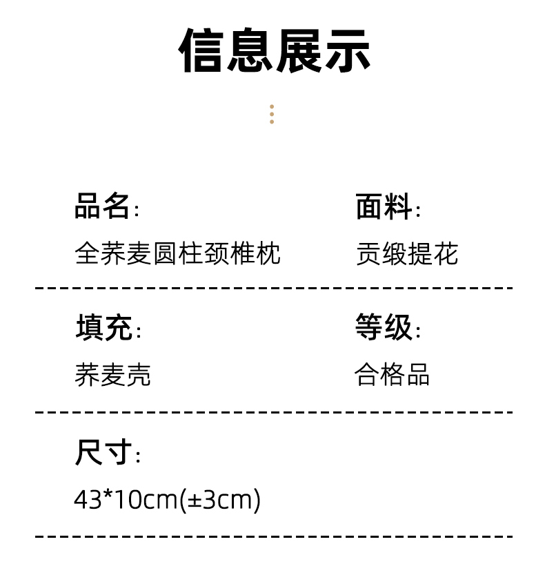 商品名称:(总)织布人 2025新款荞麦枕丝绸贡缎圆柱糖果枕调养颈椎专用枕头硬枕芯