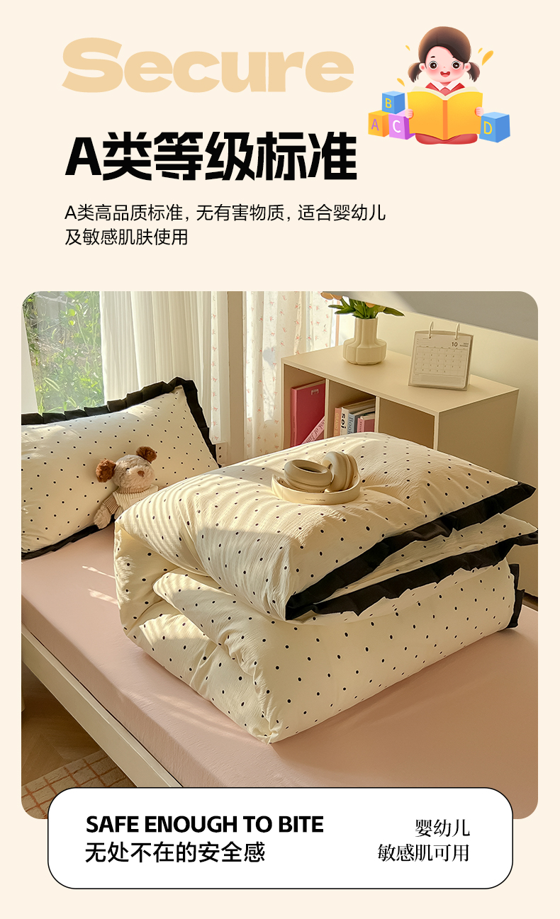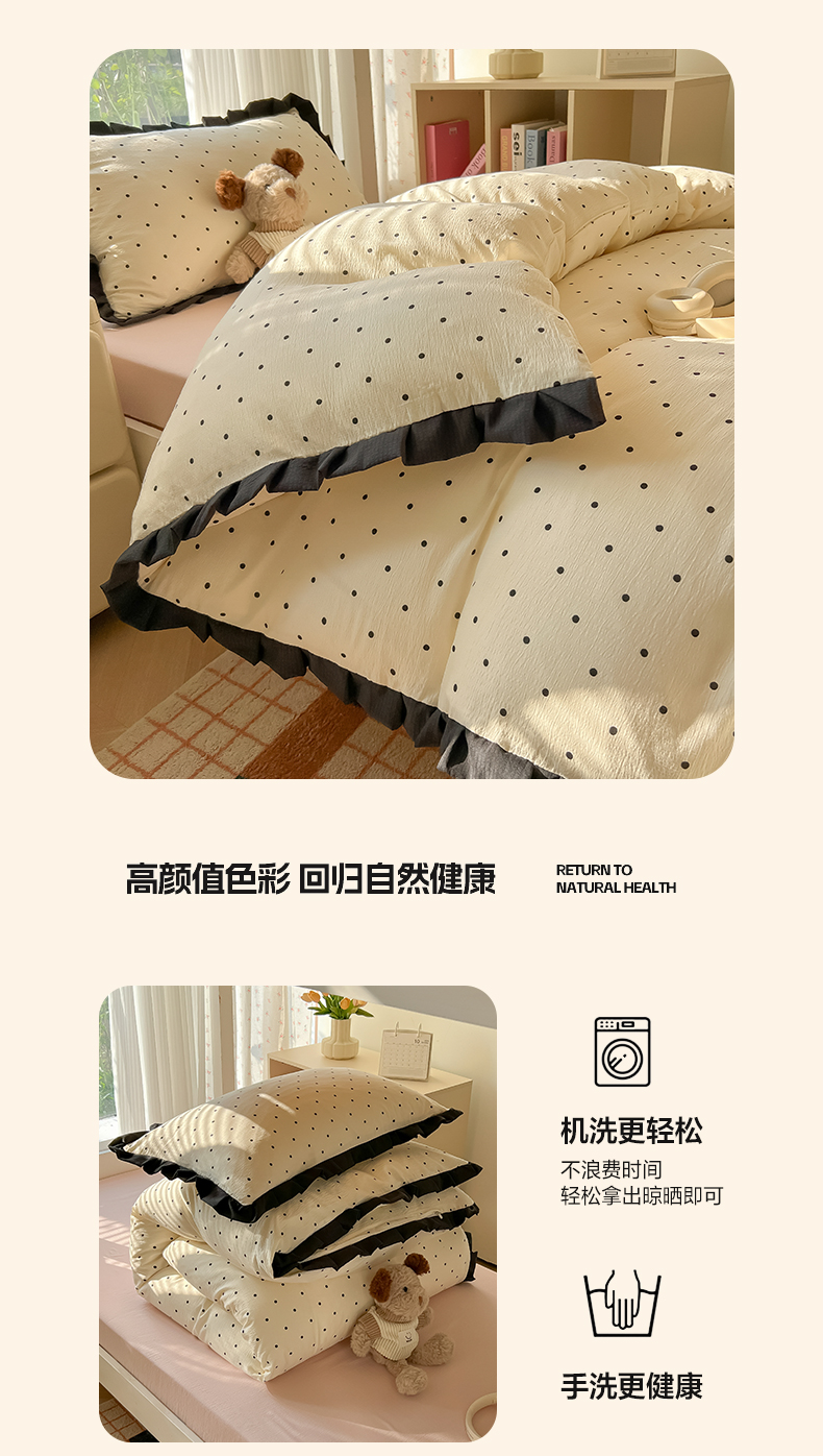 当前位置: 91家纺网 > 商品网购 > 床品套件 > 四件套 > 其它四件套 > 韩巢家纺 2025新款小波点学生宿舍寝室上下铺三件套开学季花边被套四件套 米黄波点【黑皱皱花边款】