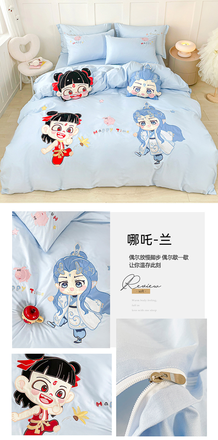 商品名称:(总)金绣美居 2025新款全棉大版卡通贴布绣春夏新款四件套-哪吒