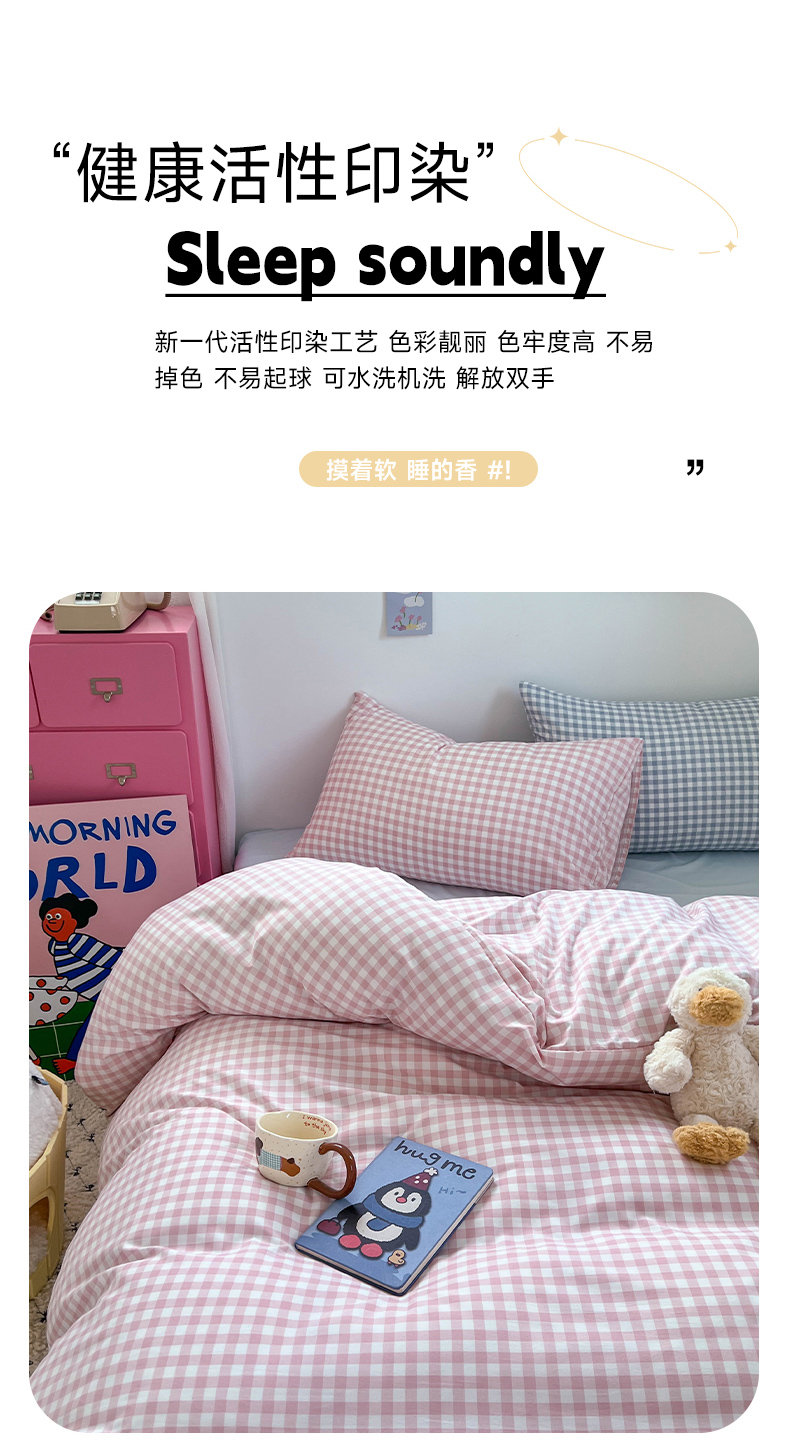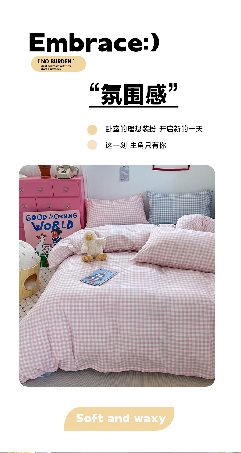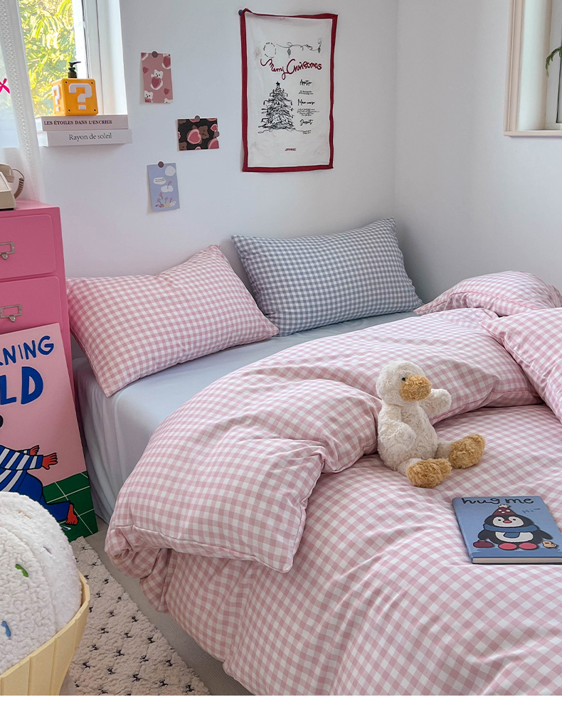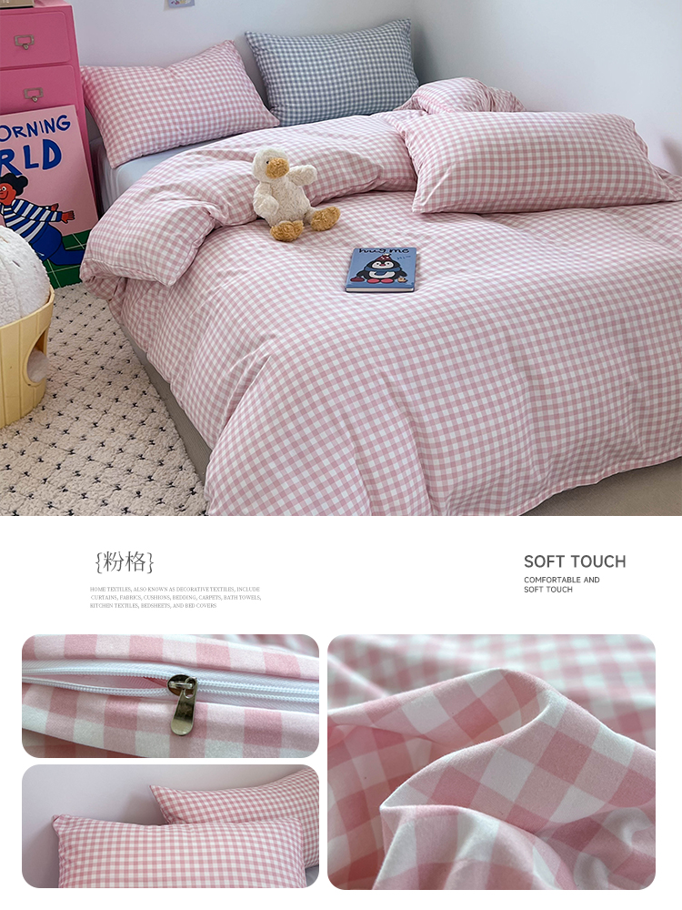 当前位置: 91家纺网 > 商品网购 > 床品套件 > 四件套 > 双层纱四件套 > 红嘴企鹅 2025新款云感提花双层纱印花系列四件套 格子粉