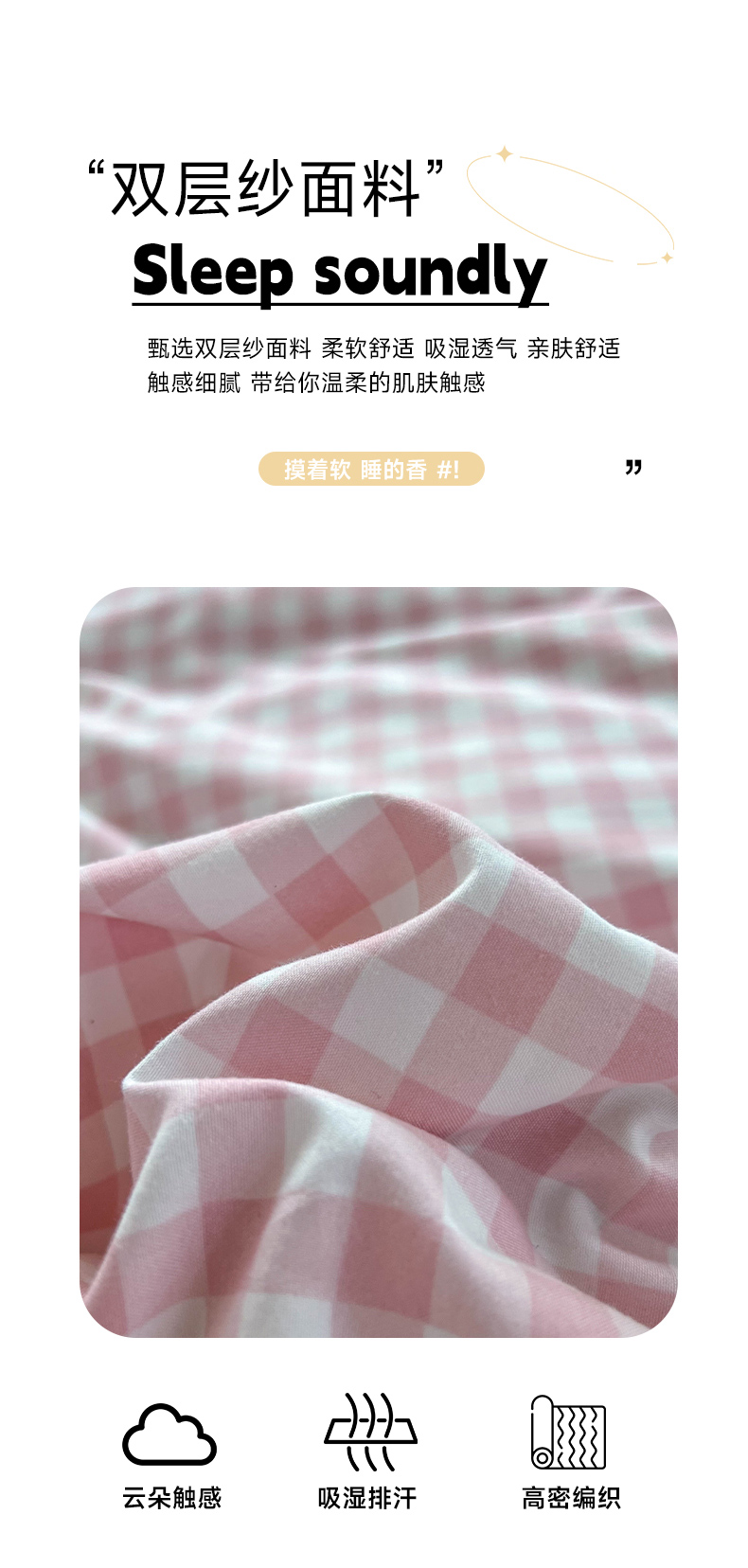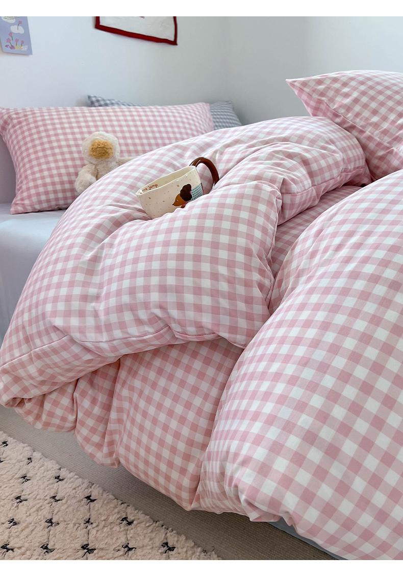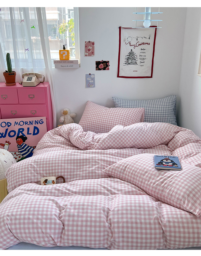 当前位置: 91家纺网 > 商品网购 > 床品套件 > 四件套 > 双层纱四件套 > 红嘴企鹅 2025新款云感提花双层纱印花系列四件套 格子粉