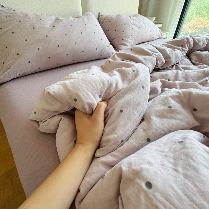 8+8 2025新款全棉A类母婴级抗菌有氧全棉双层纱亲肤全棉小清新印花三件套四件套 简约款-芋泥波波
