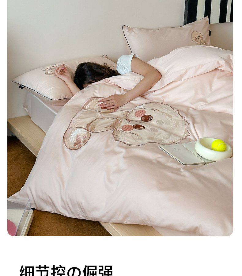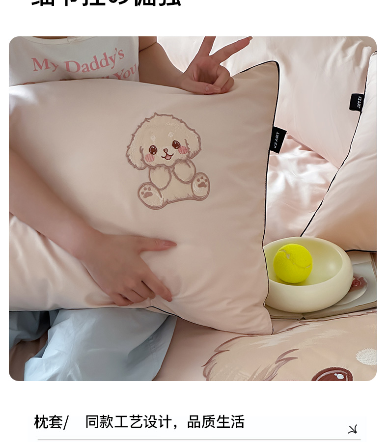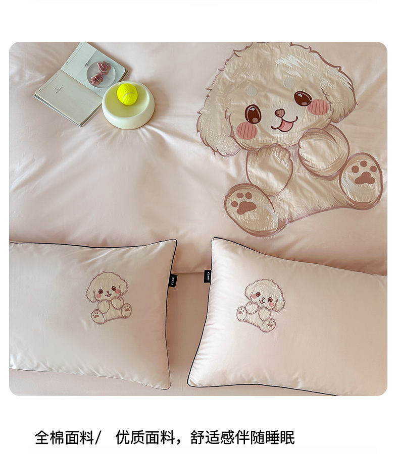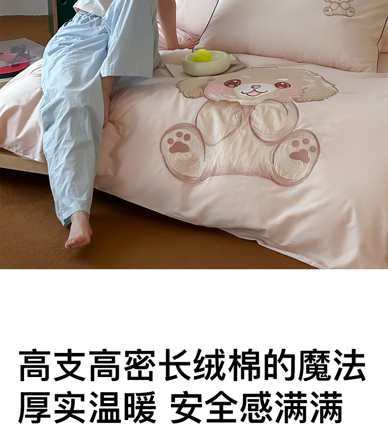 (总)卡姿家纺 2025秋冬60支长绒棉贴布绣四件套-萌趣多
