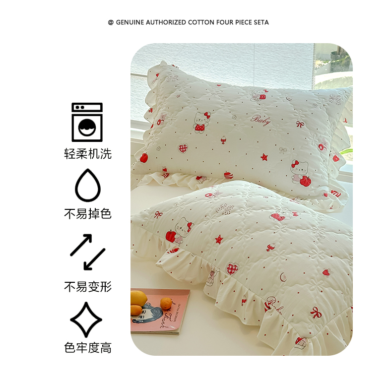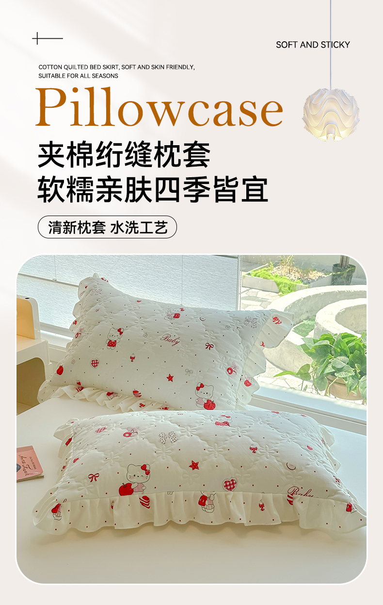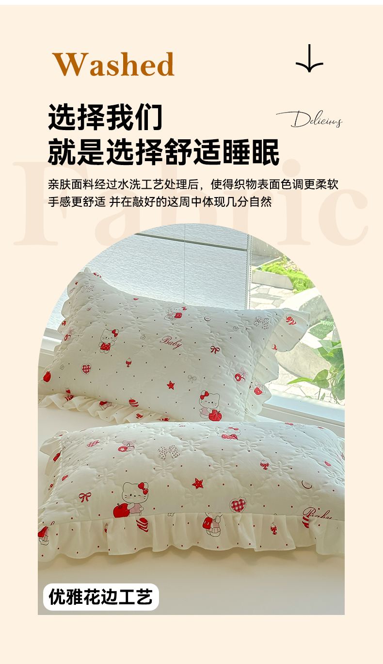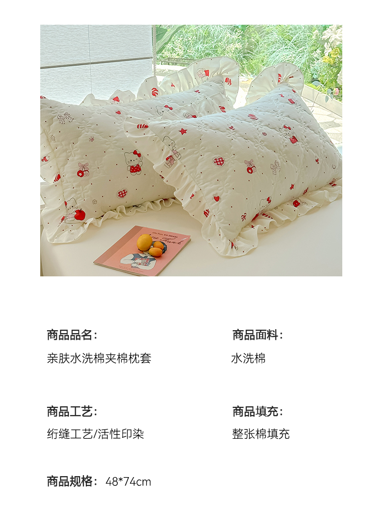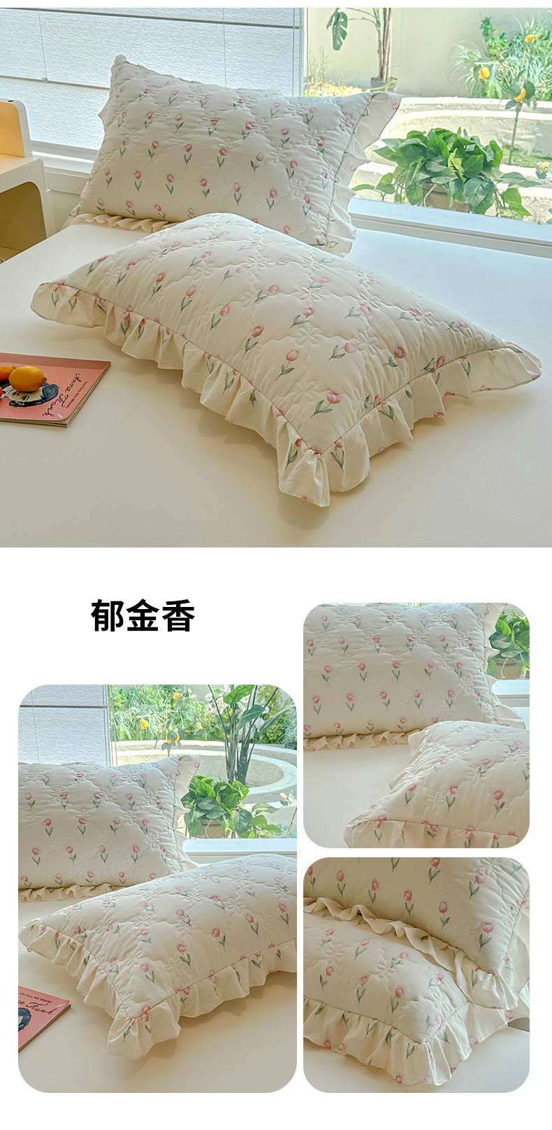 商品名称:忘忧草 2025新款亲肤水洗棉花边单枕套 枕套单件 开心喵
