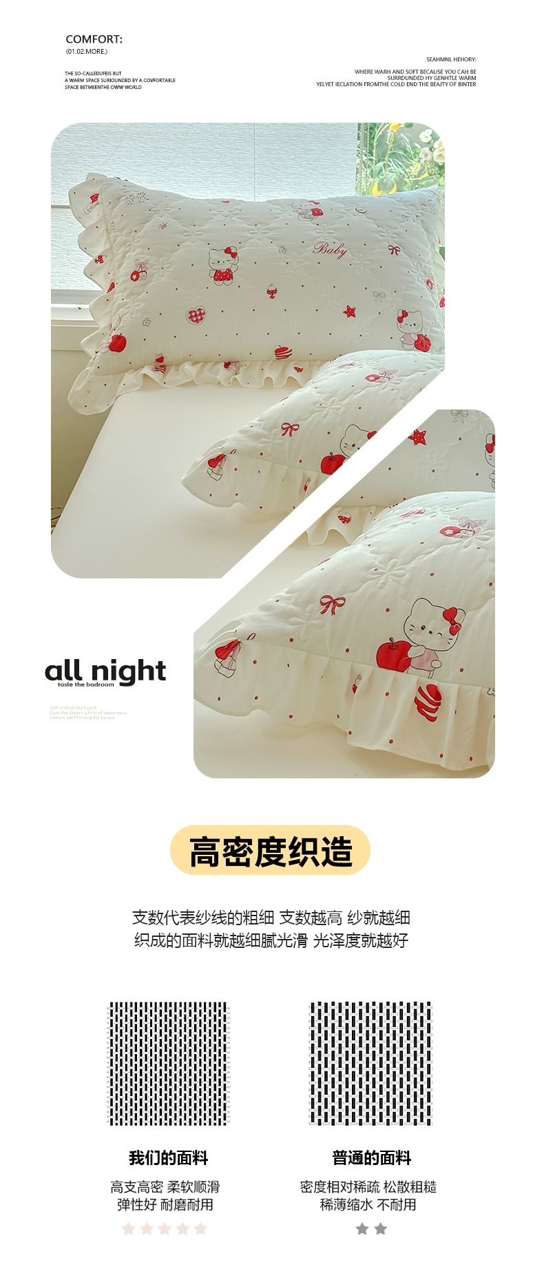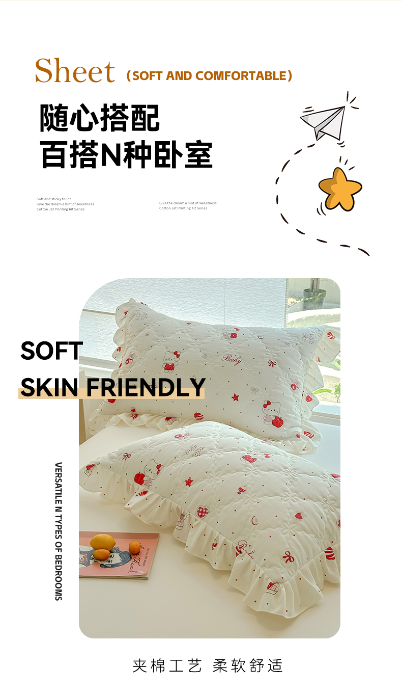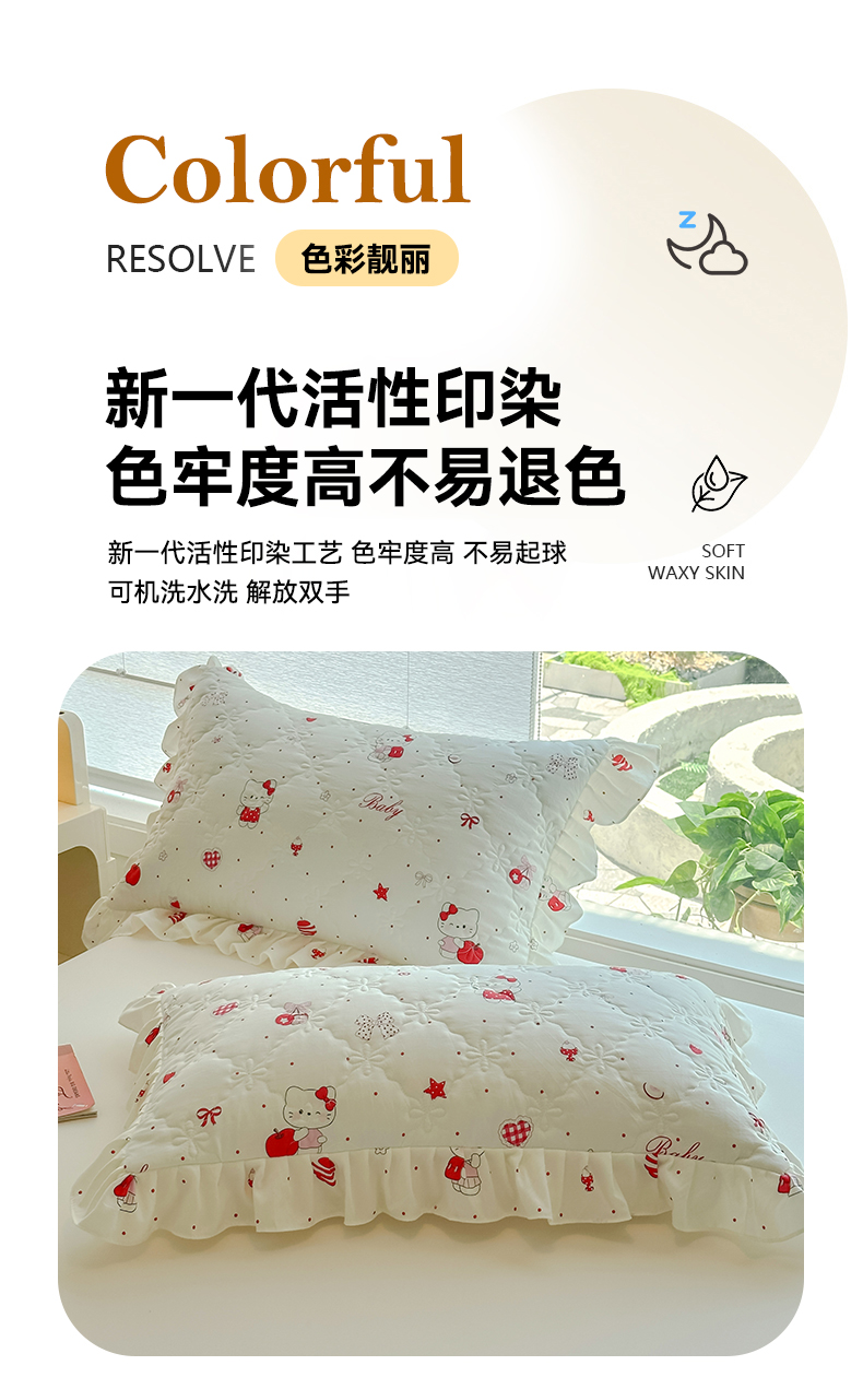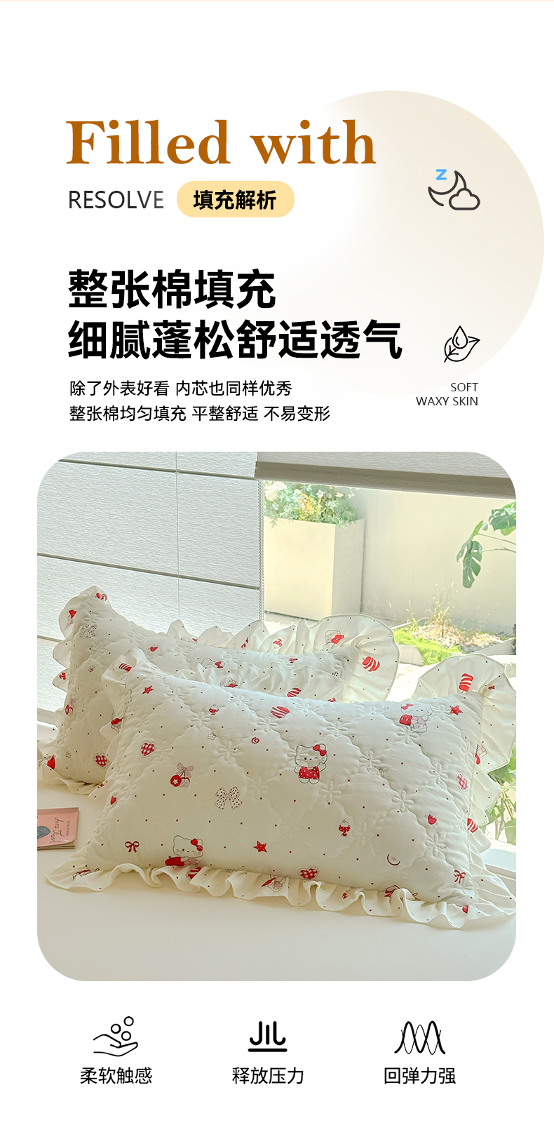 商品名称:忘忧草 2025新款亲肤水洗棉花边单枕套 枕套单件 开心喵