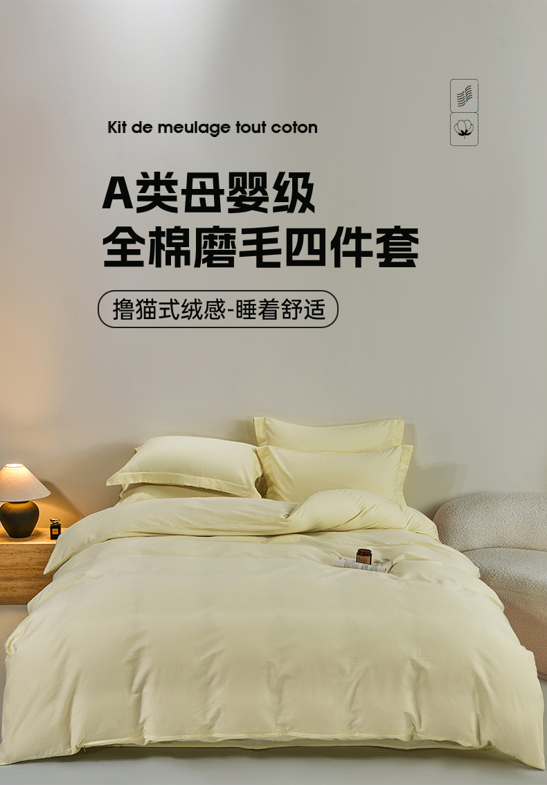 当前位置: 91家纺网 > 商品网购 > 床品套件 > 四件套 > 全棉普通四件套 > 憨豆家纺 2026新款全棉磨毛四件套正宗加厚长绒棉贡缎100%纯棉四件套(含买家秀)莫兰迪 莫兰迪-奶昔黄