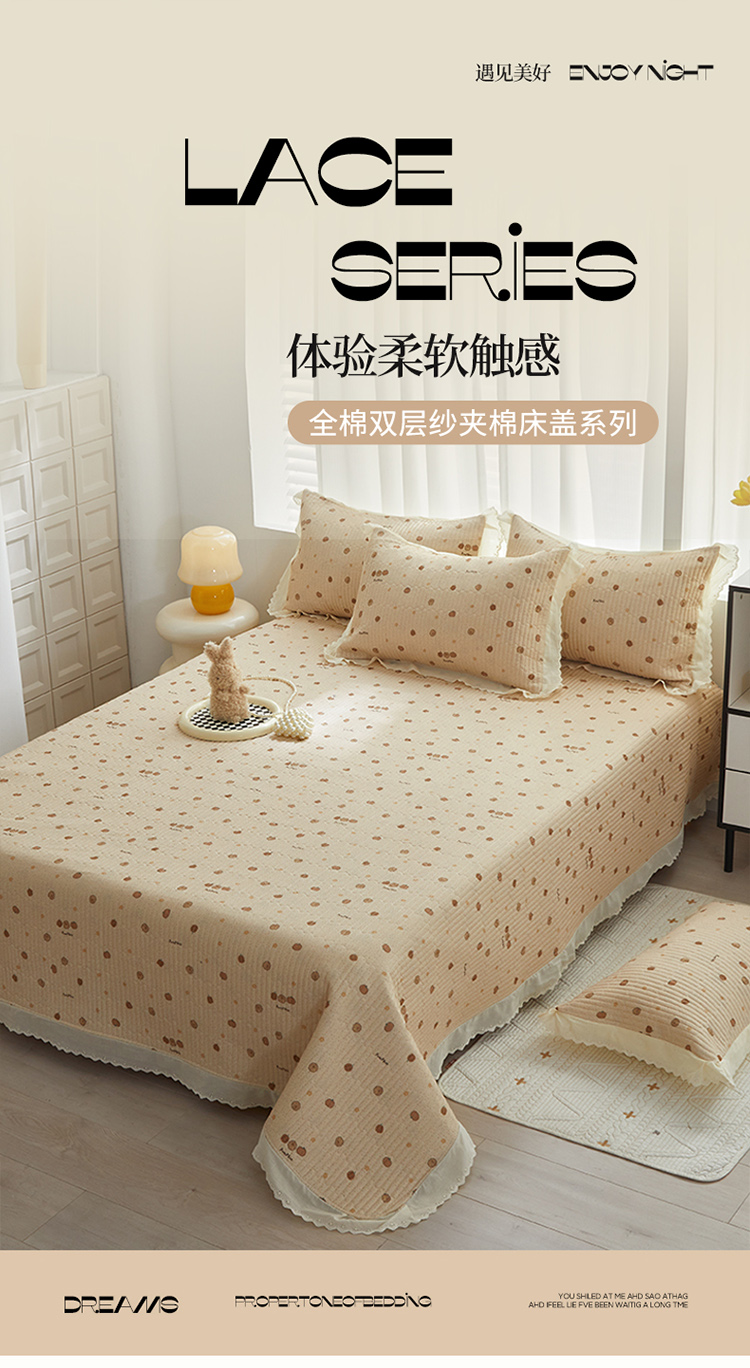 (总)舒居家纺 2025新款A类全棉双层纱花边 床盖 软床单 软床垫( 风格二),黛西,组合图,可艾兔,南瓜小贝,浅影灰,山岚绮梦,团团,小飞象,小时光粉