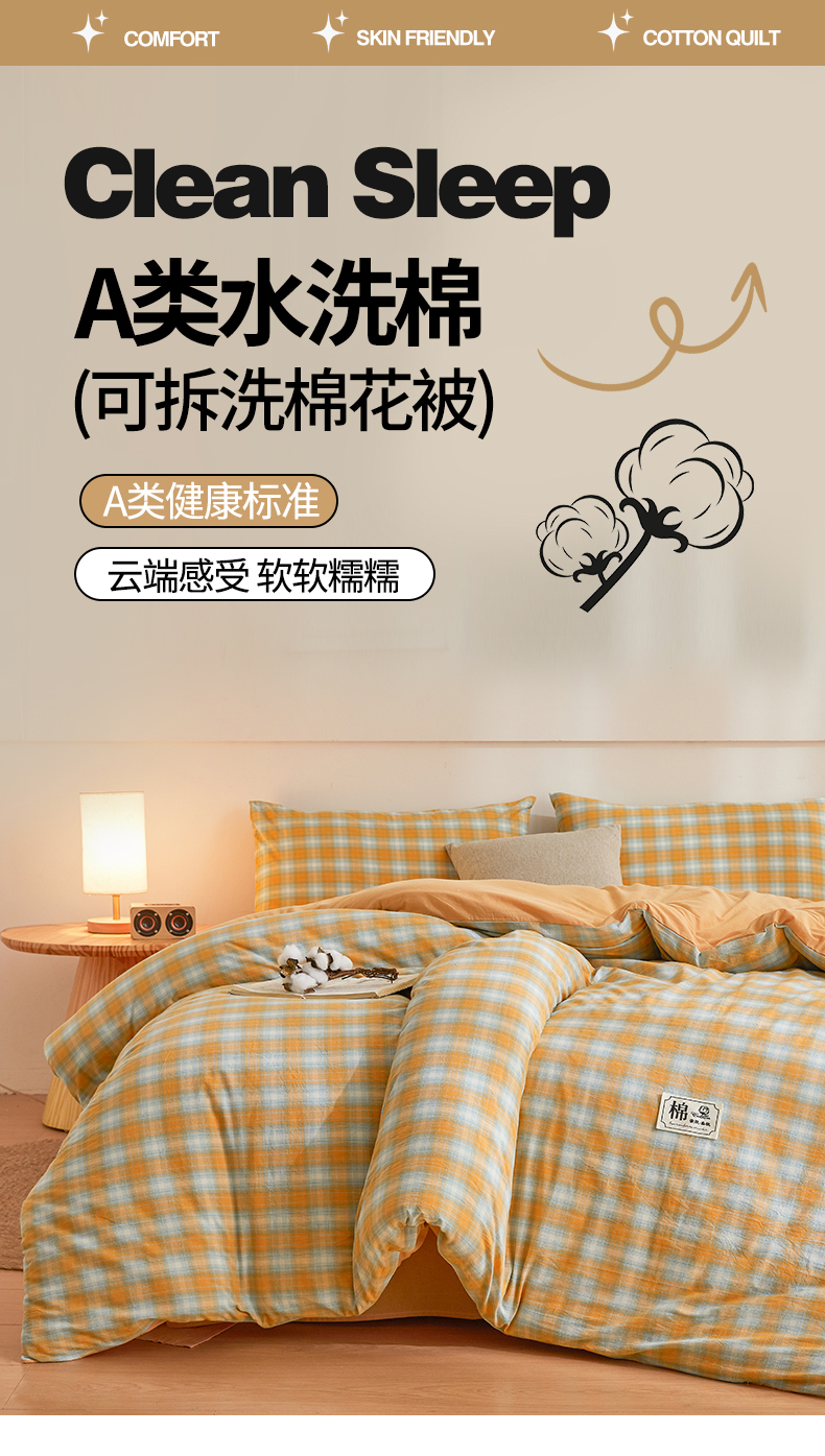 • 91家纺网 家纺一手货源 找家纺 晓时候 2025新款A类水洗棉可拆洗新疆棉花被冬被春秋被夏被四季被子被芯 星空桔