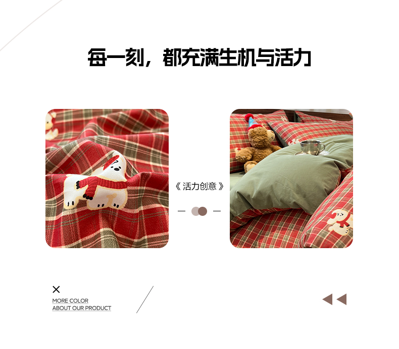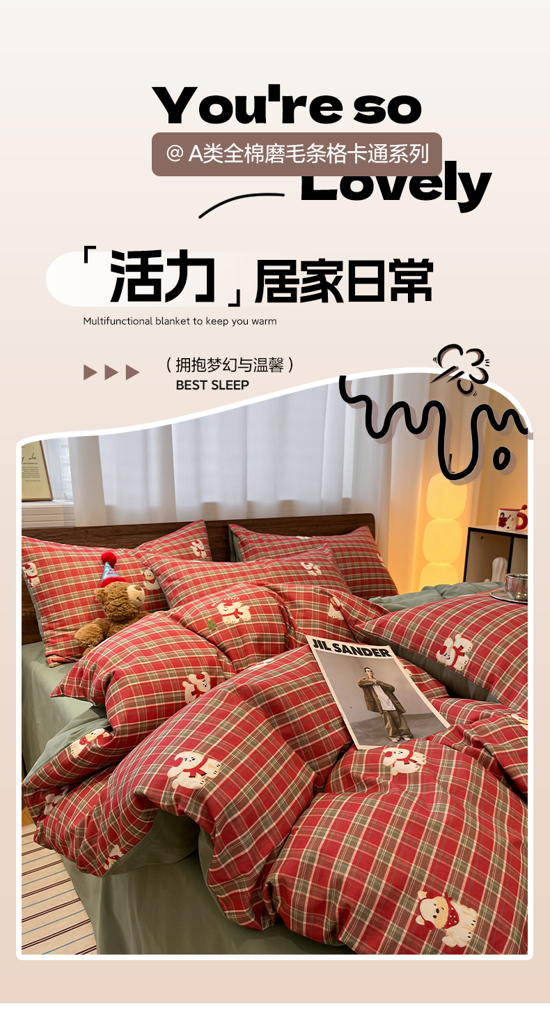 商品名称:(总)莱登卡奴 2025新款A类100%全棉磨毛条格卡通系列四件套