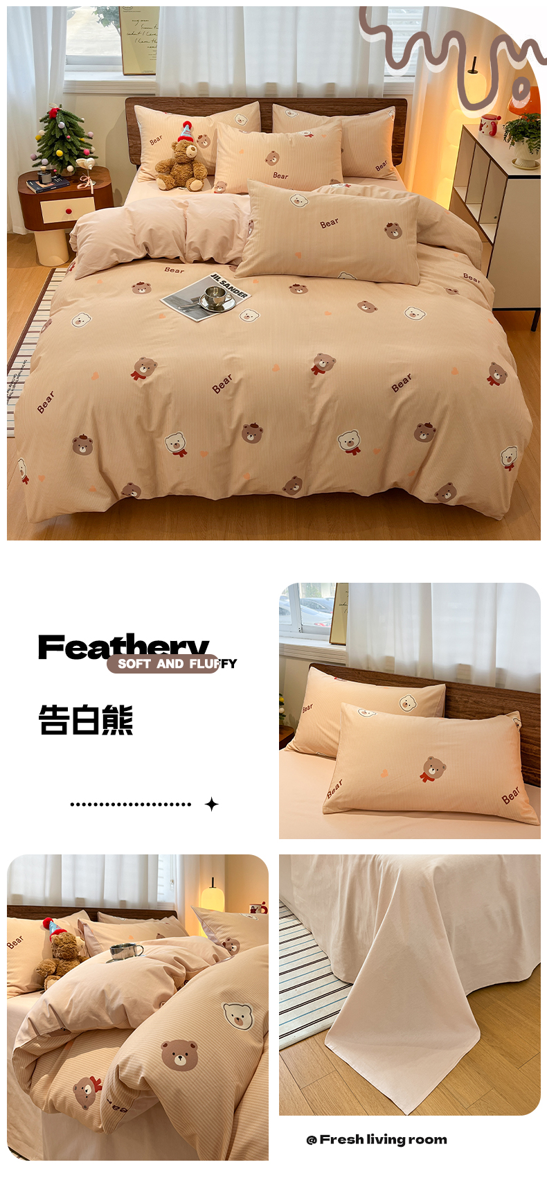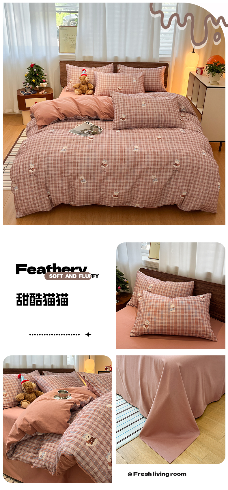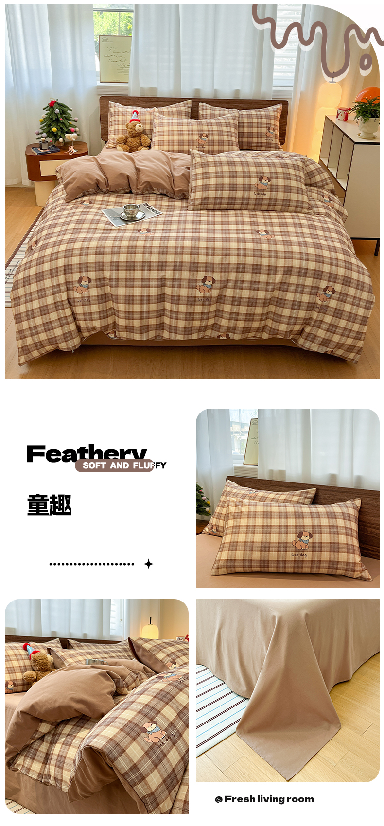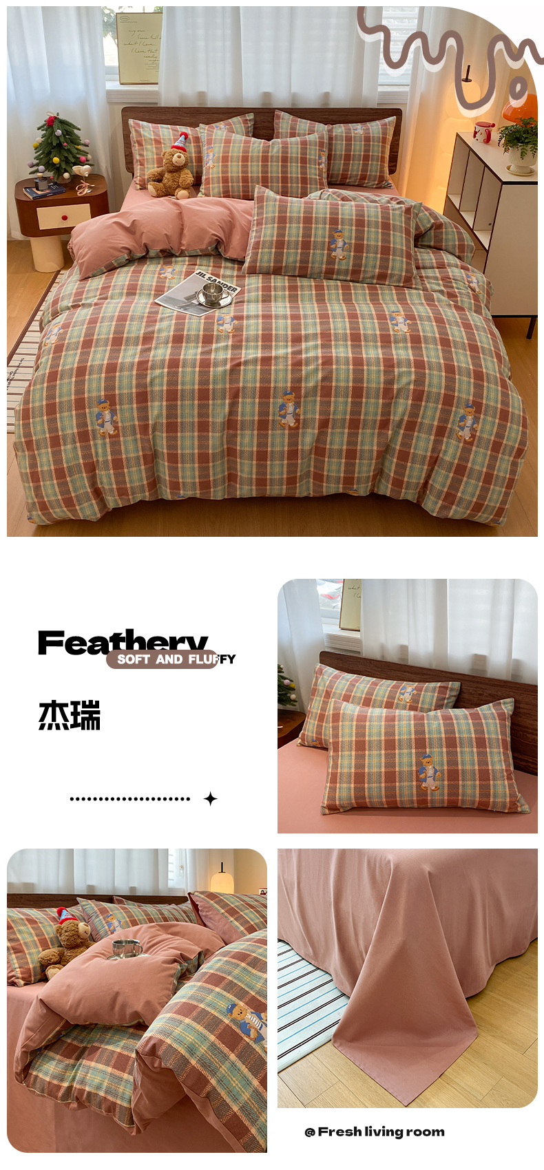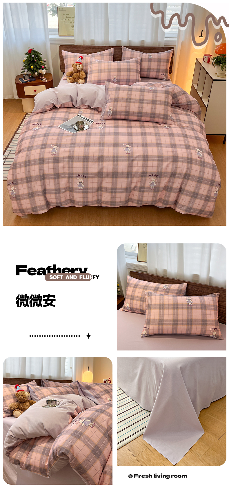 (总)莱登卡奴 2025新款A类100%全棉磨毛条格卡通系列四件套