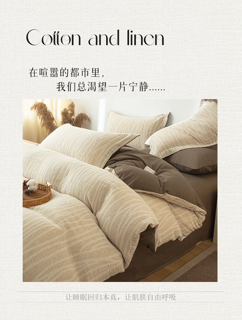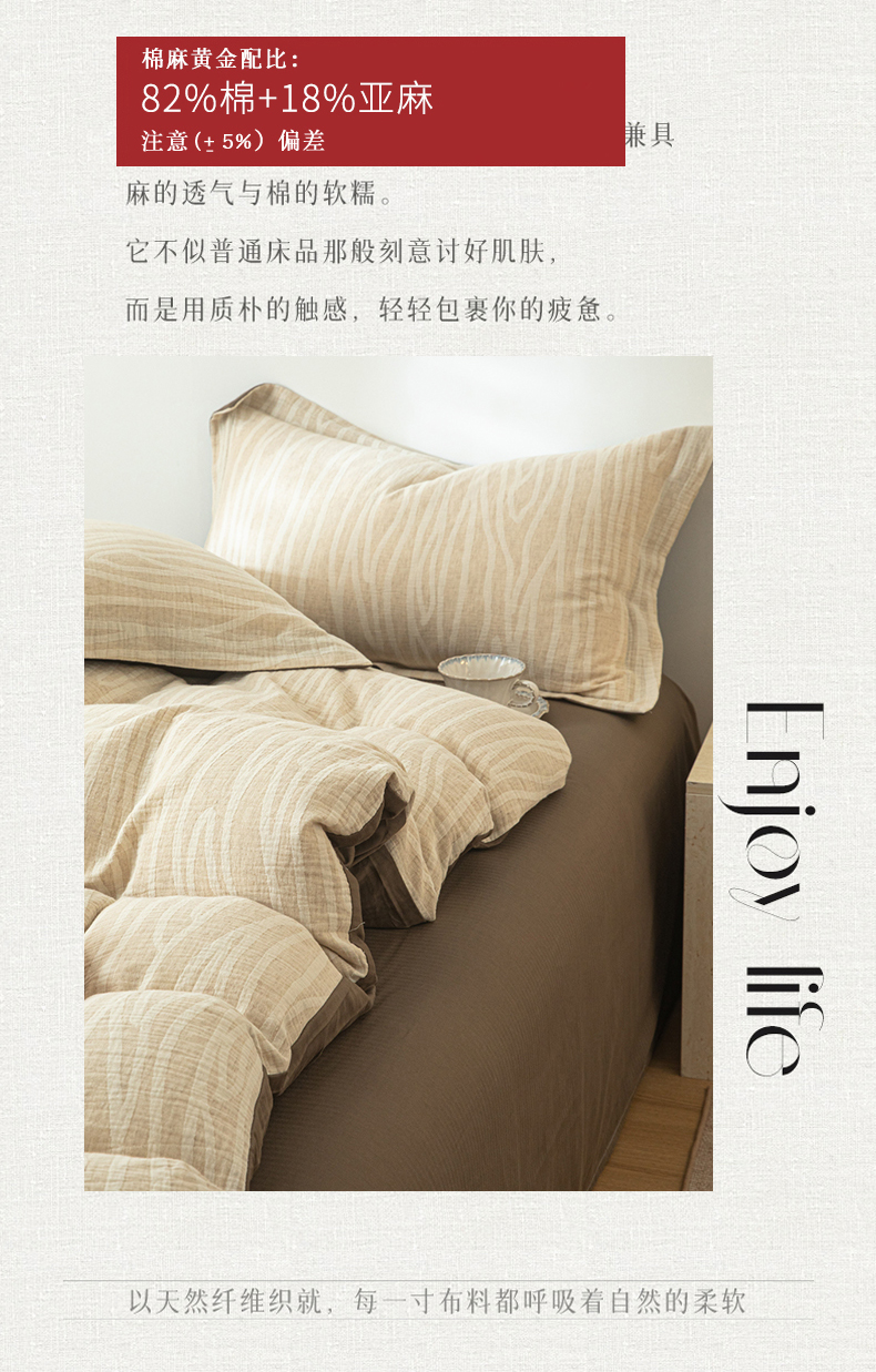 当前位置: 91家纺网 > 商品网购 > 床品套件 > 四件套 > 其它四件套 > 眠博士 2025新款AB面40支棉麻色织提花四件套 棉麻套件-树纹棕