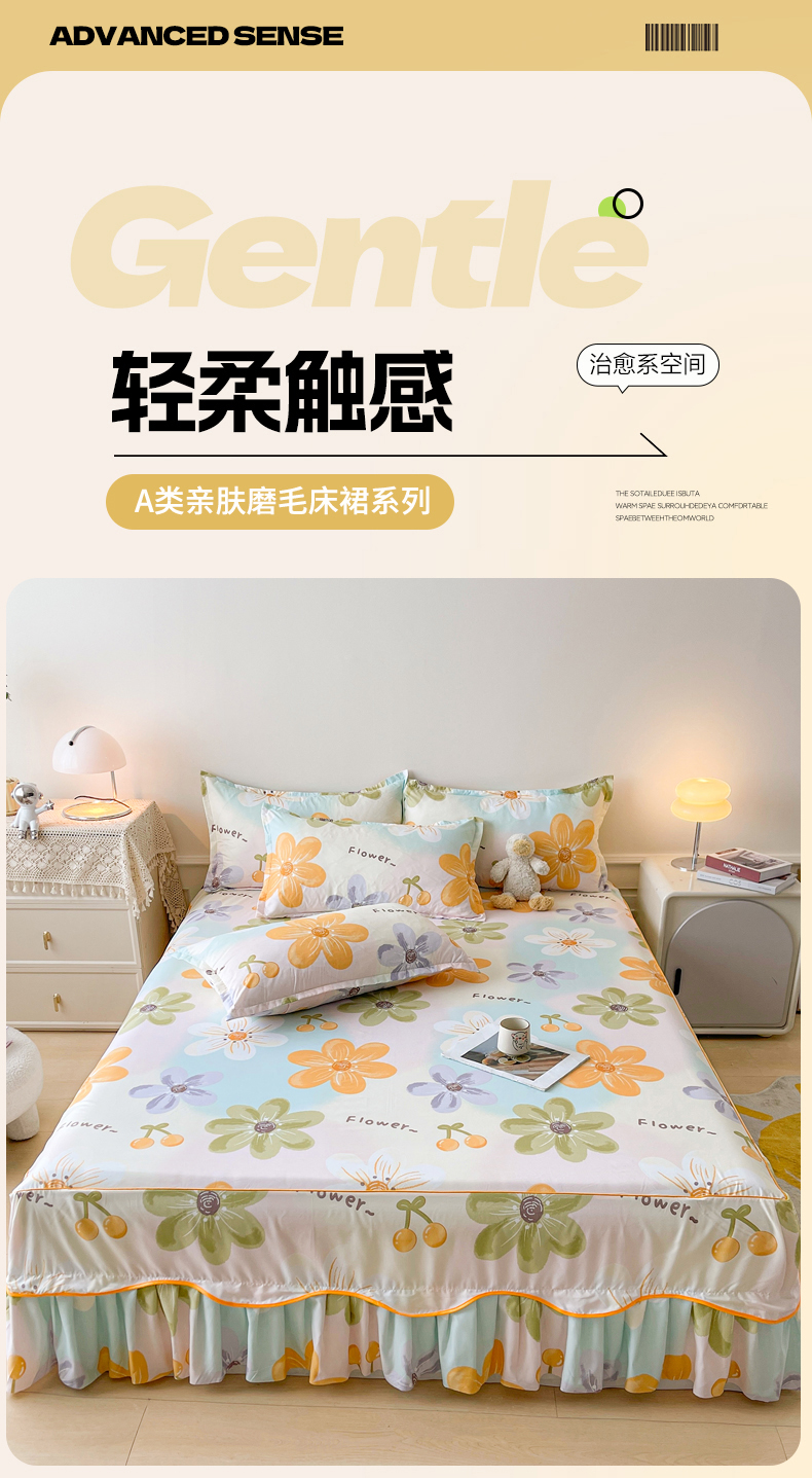 • 91家纺网 家纺一手货源 找家纺 笠裙家纺 2025新款磨毛S边韩版防滑床裙单床裙床裙单件 浅花
