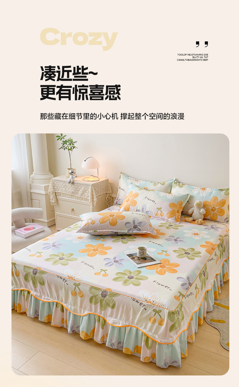 当前位置: 91家纺网 > 商品网购 > 床上用品 > 床裙 > 笠裙家纺 2025新款磨毛S边韩版防滑床裙单床裙床裙单件 浅花