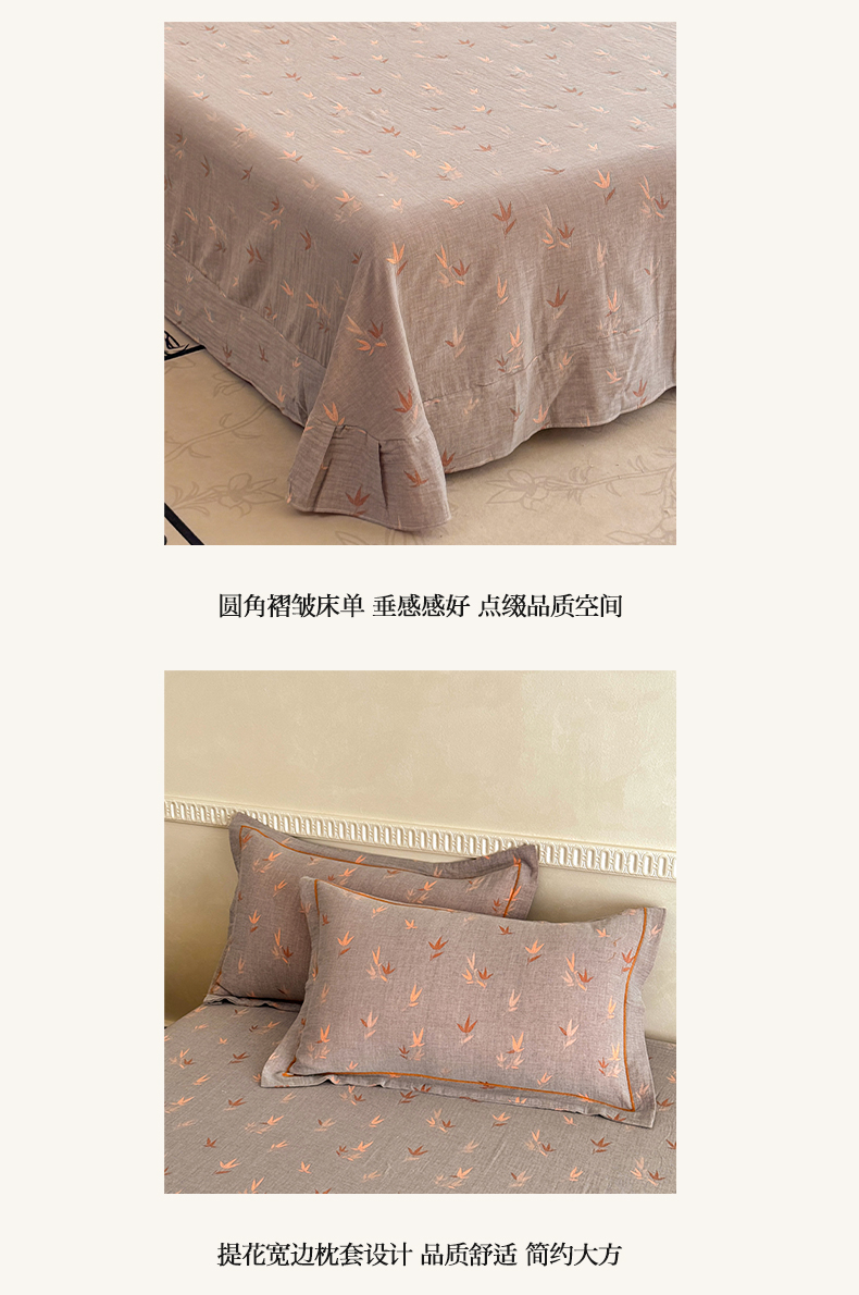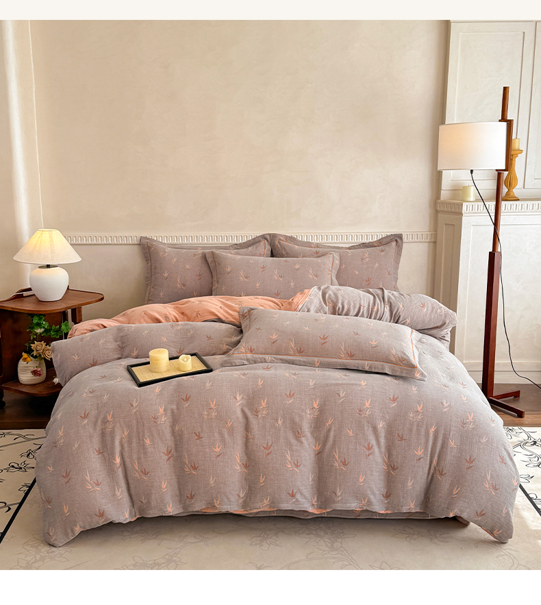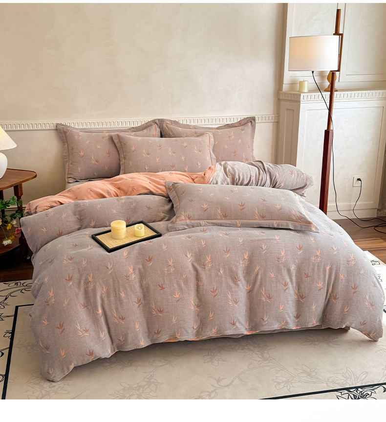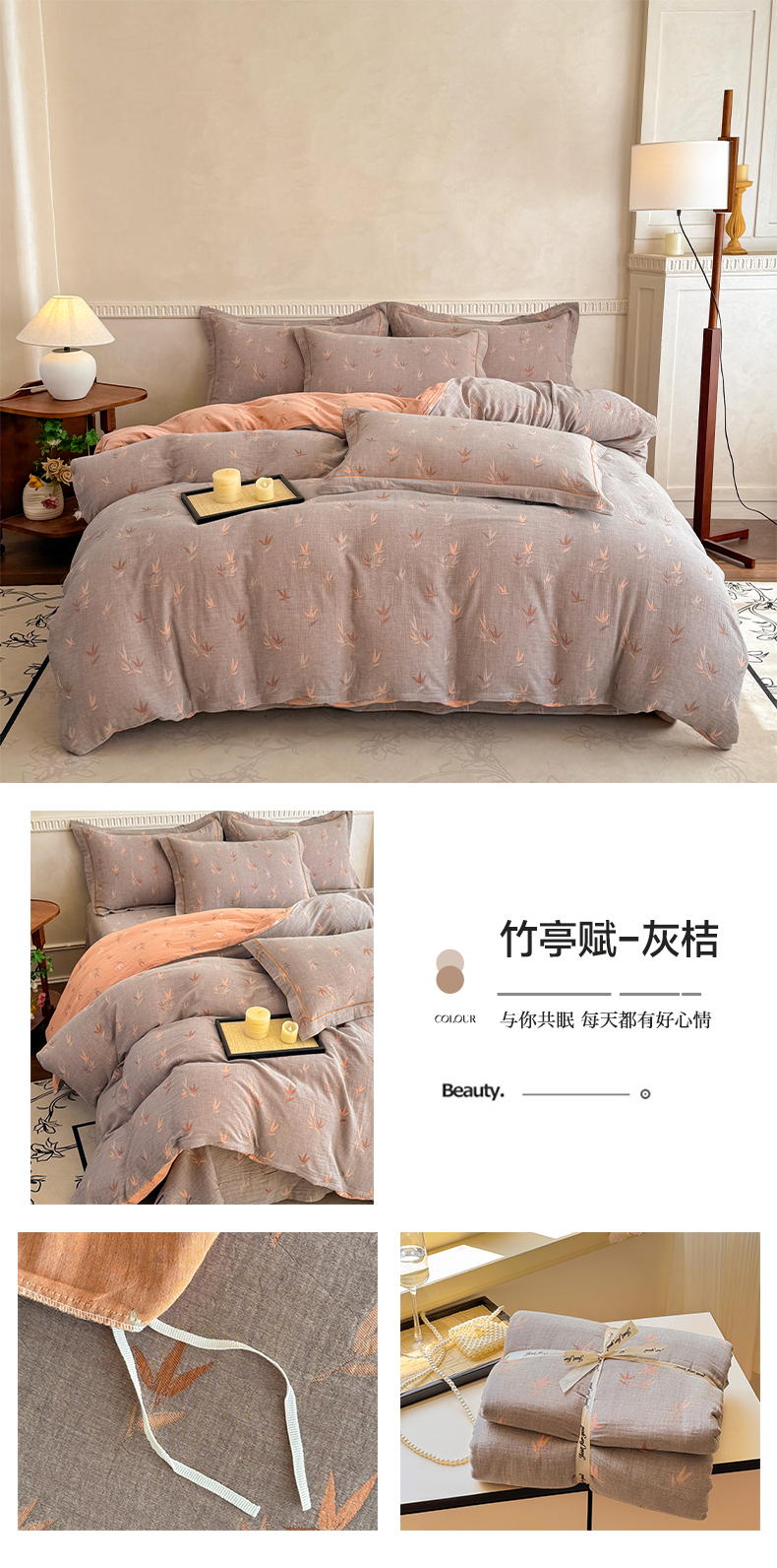 当前位置: 91家纺网 > 商品网购 > 床品套件 > 四件套 > 双层纱四件套 > 江南春家纺 【幻-暖纱】2025新款A类100%全棉色织提花双层纱四件套 【幻-暖纱】竹亭赋-灰桔