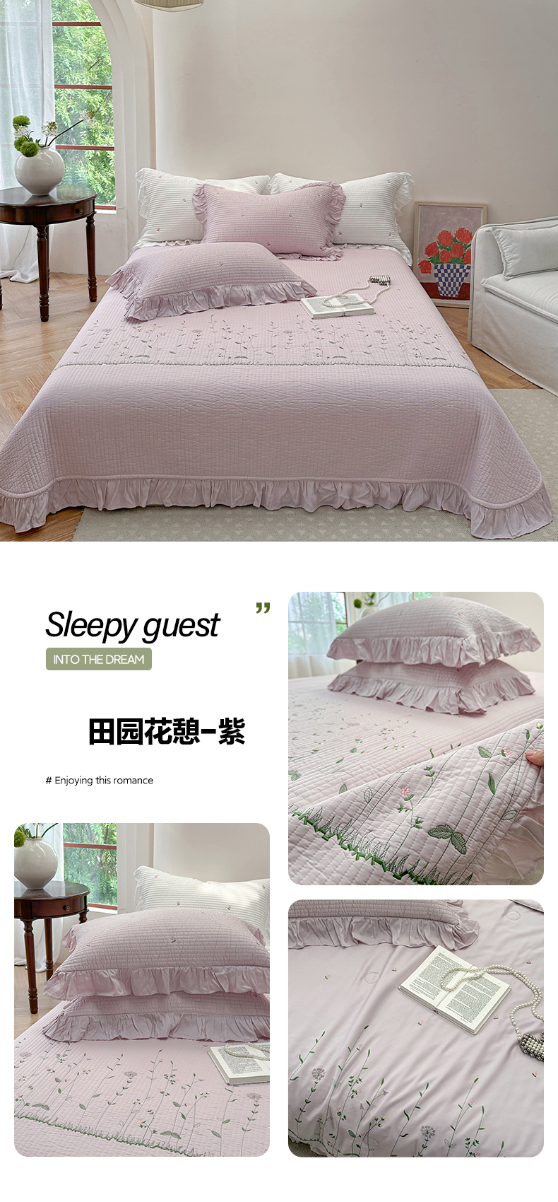 2022新款40S纯棉水洗棉韩版全棉荷叶边夹棉绗缝床盖三件套,海盐蓝,静谧灰,抹茶绿,奶油黄,千黛紫,浅豆沙,悠悠粉,云朵白,马卡桔,青草绿