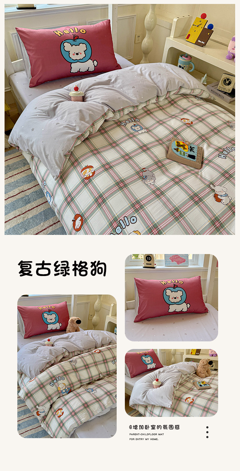 商品名称:曼陀罗 2025新款软软棉学生宿舍上下铺三件套 格子萌狗
