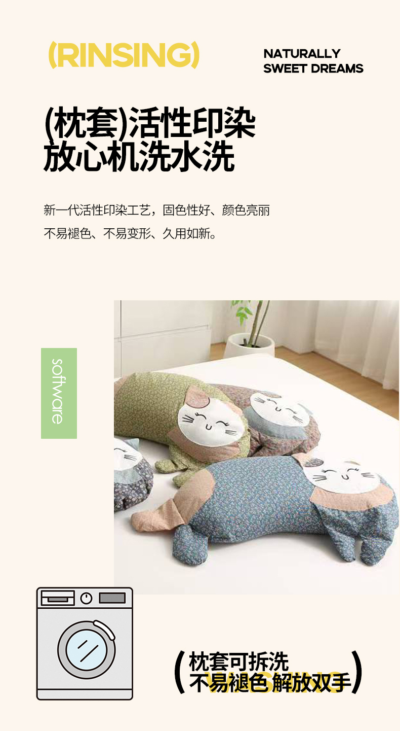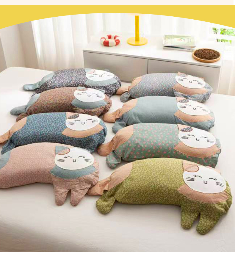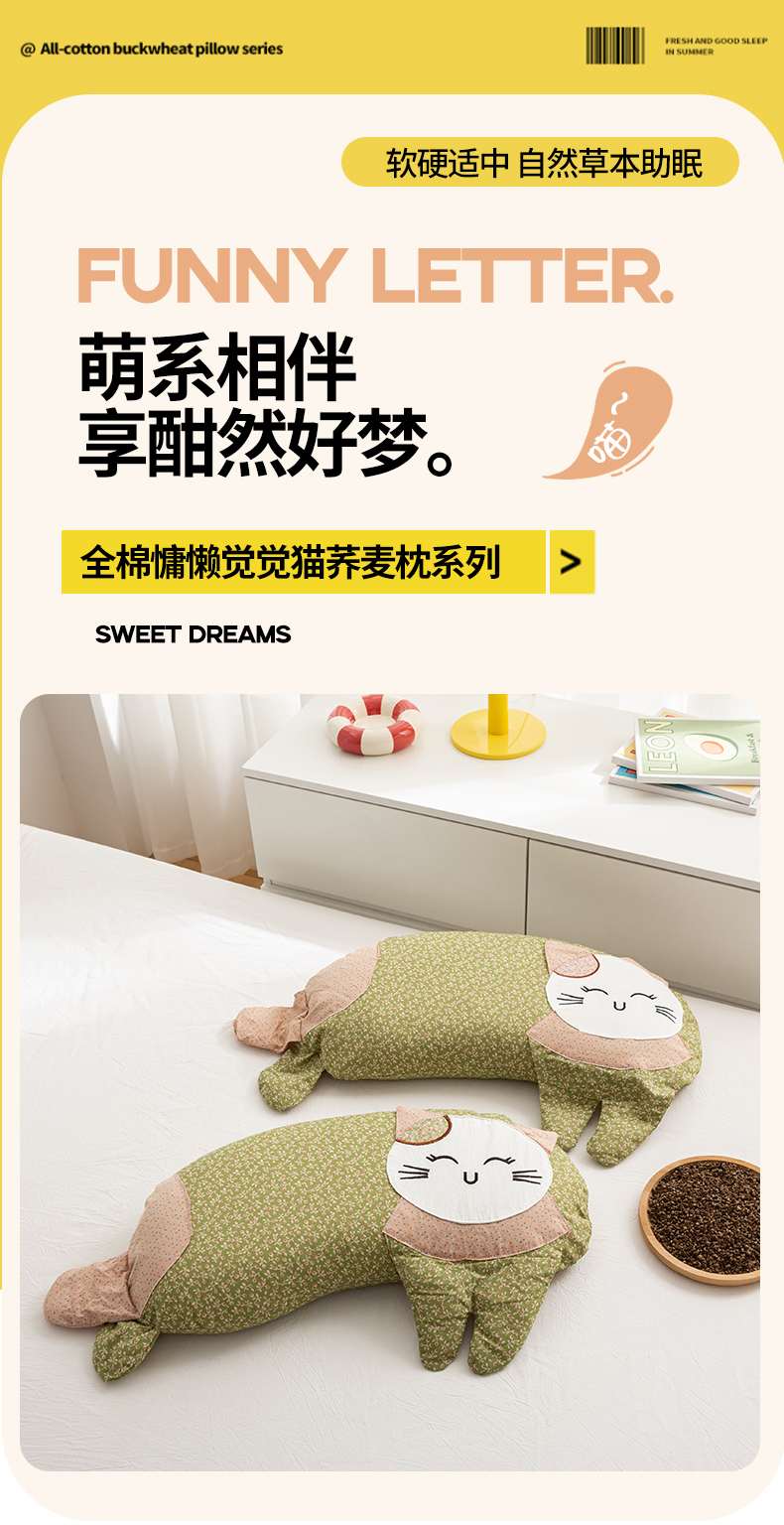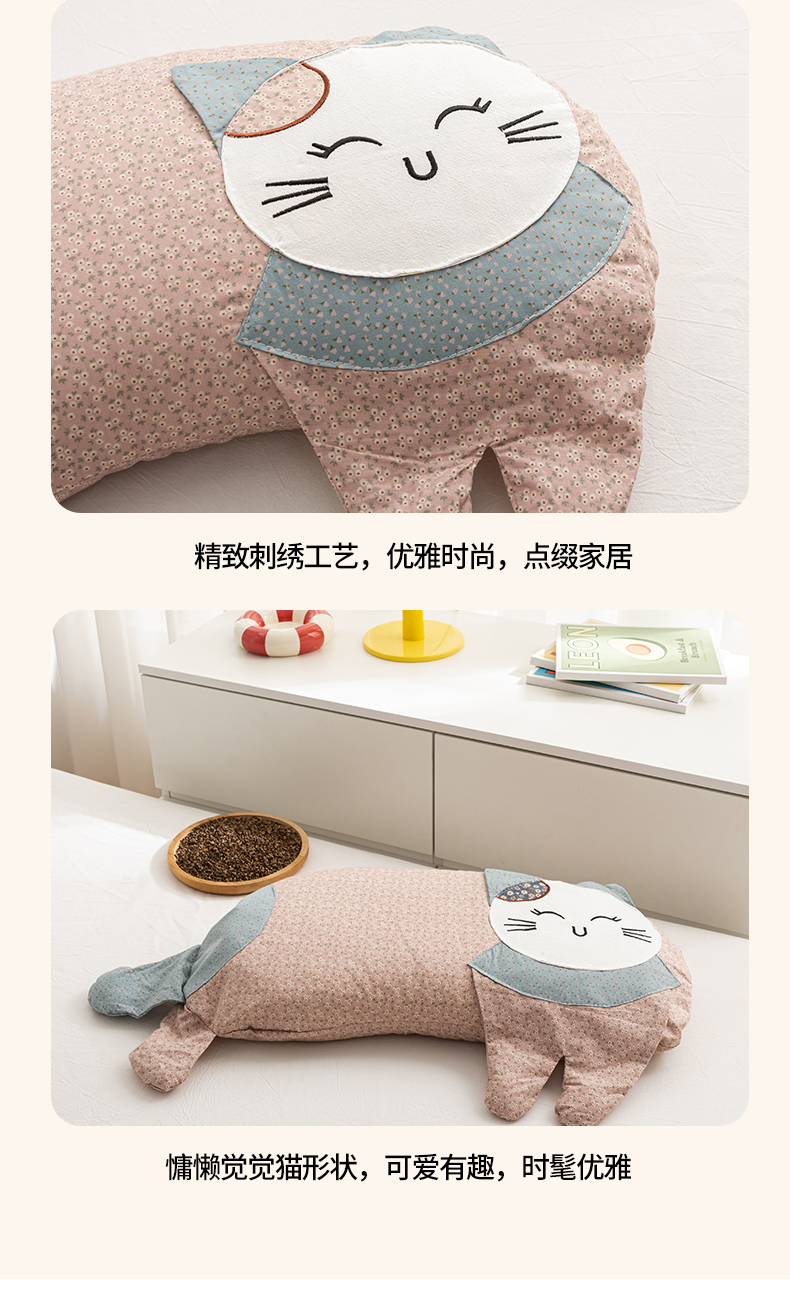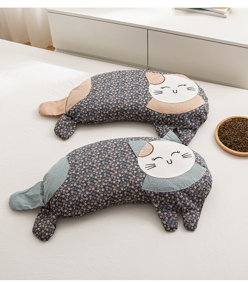 (总)萌番宝 2025新款春夏新款慵懒觉觉猫卡通荞麦枕,藏青色,黛粉色,湖水绿,墨兰色,天空蓝,氧绿色,藻蓝色,棕红色