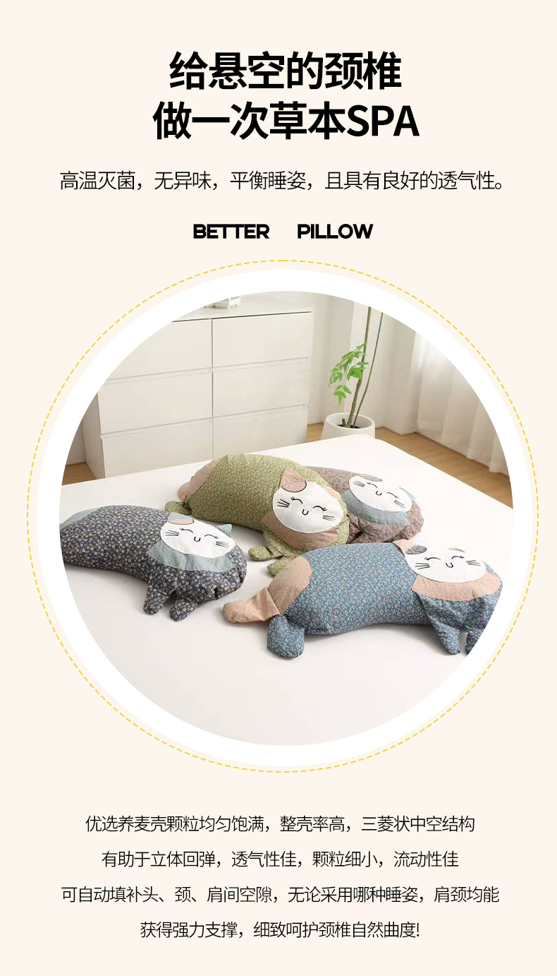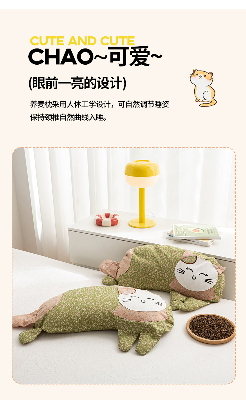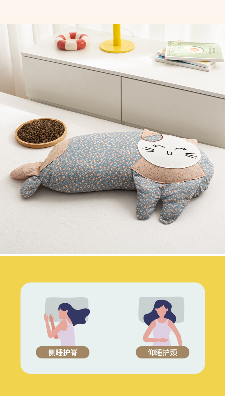 商品名称:萌番宝 2025新款春夏新款慵懒觉觉猫卡通荞麦枕 藻蓝色