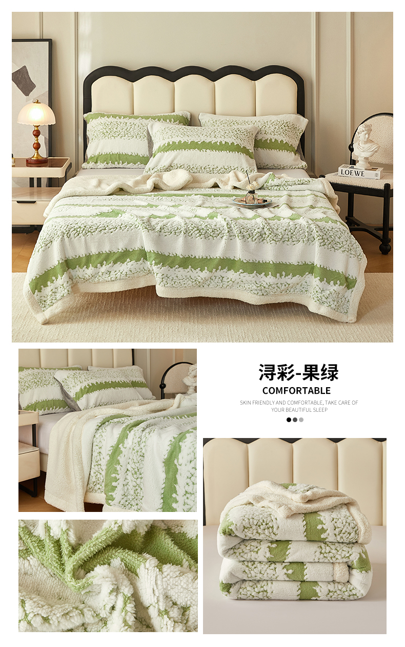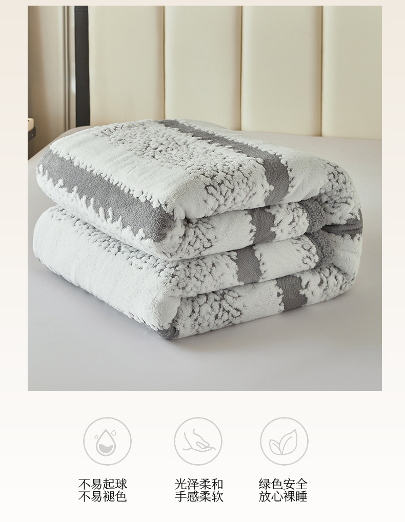 (总)莱家富 2026新款加厚双层复合毯舒棉绒剪花毛毯,兰色,绿色,米色,深灰色,樱花粉,紫色