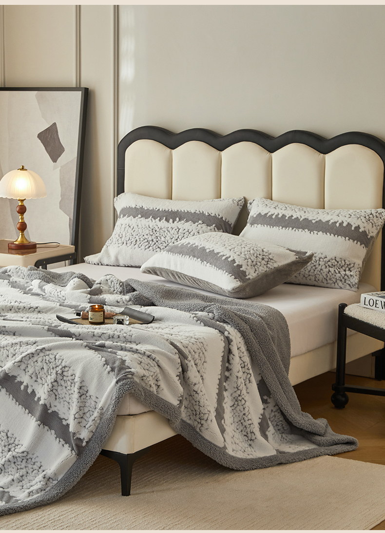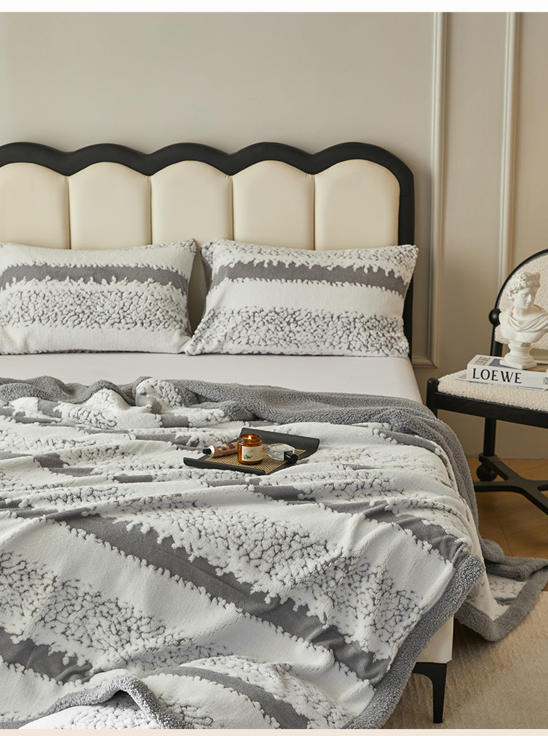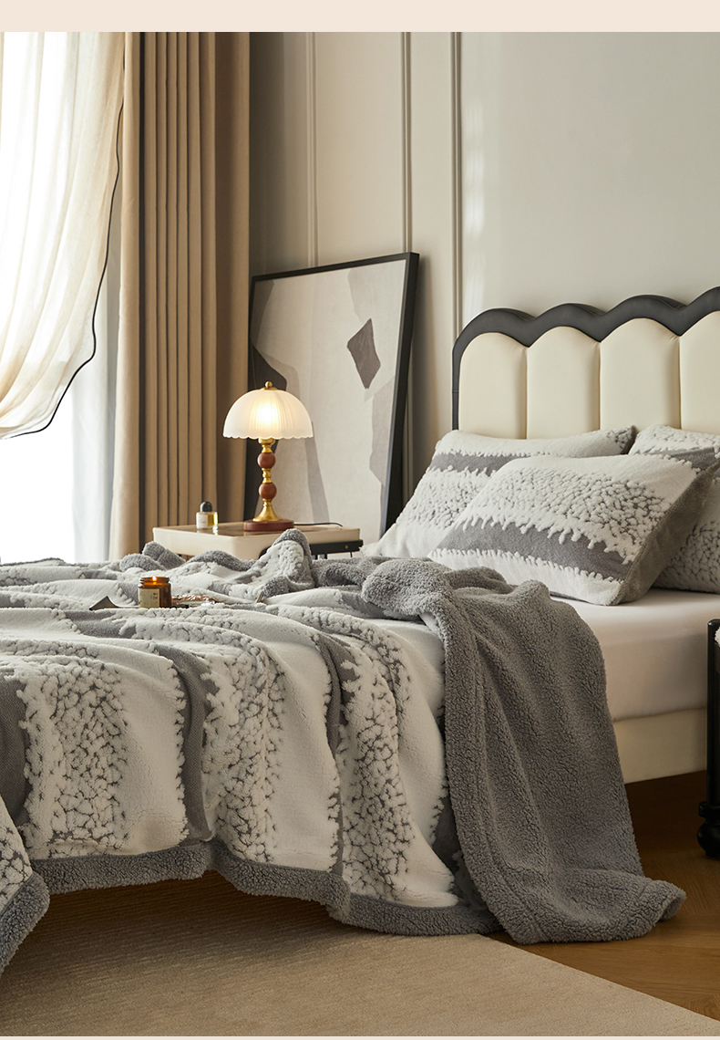 莱家富 2026新款双层加厚阳离子提花毛毯羊羔绒毛毯盖毯办公室午休毯 浔彩-灰色