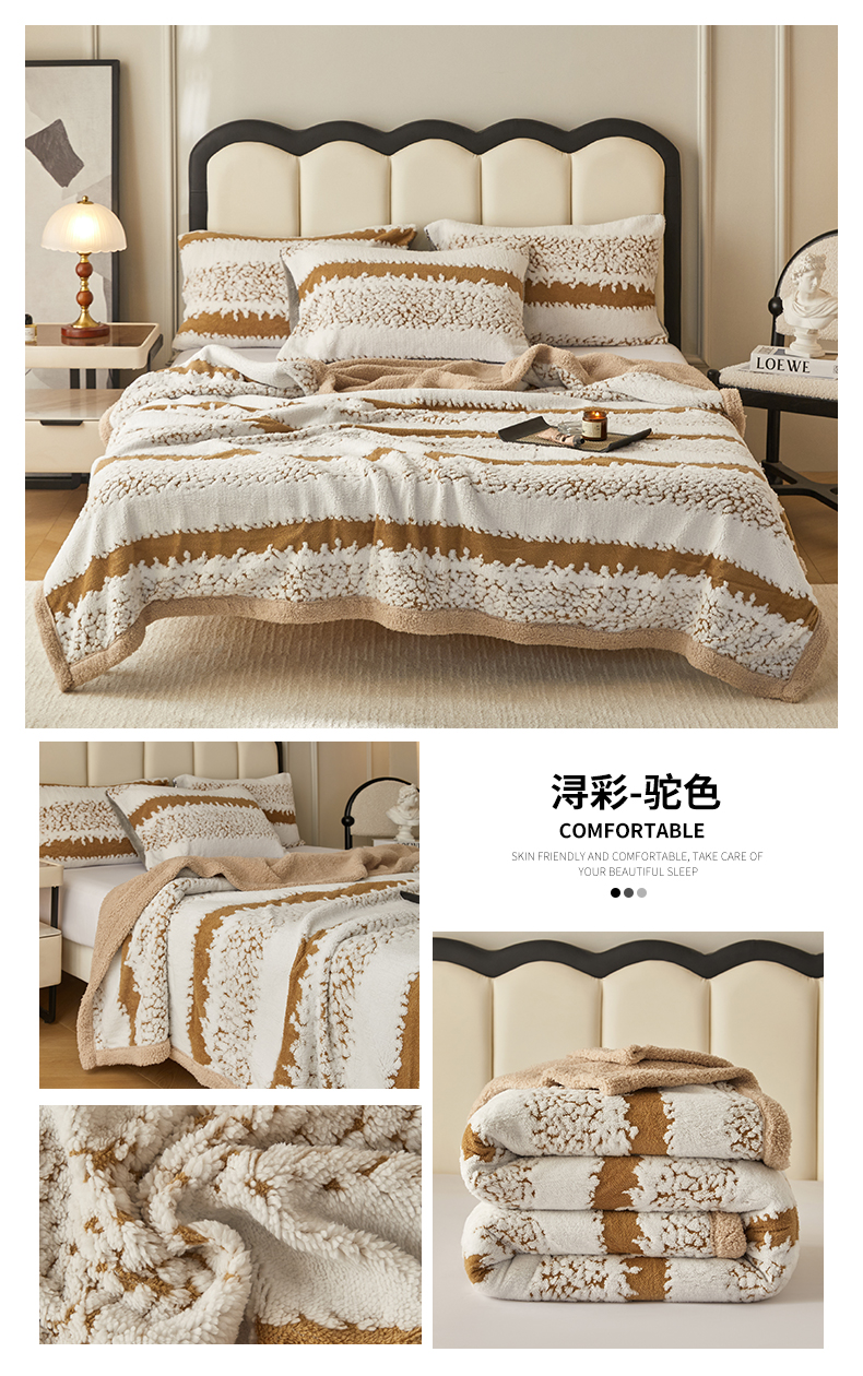 (总)莱家富 2026新款双层加厚阳离子提花毛毯羊羔绒毛毯盖毯办公室午休毯,浔彩-豆沙,浔彩-果绿,浔彩-灰色,浔彩-奶白,浔彩-天蓝,浔彩-驼色