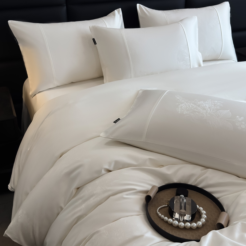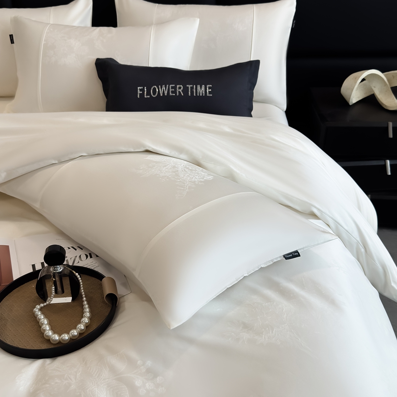 花时间 2025秋冬新款简约贡缎提花四件套 繁悦系列 繁悦-皓月白