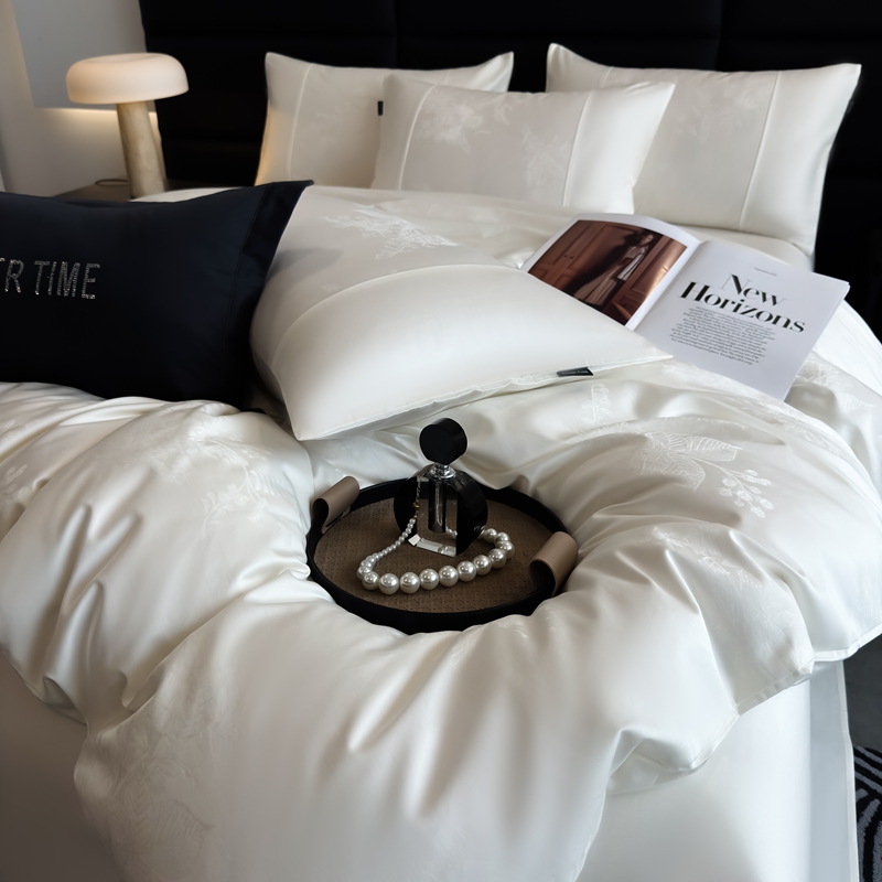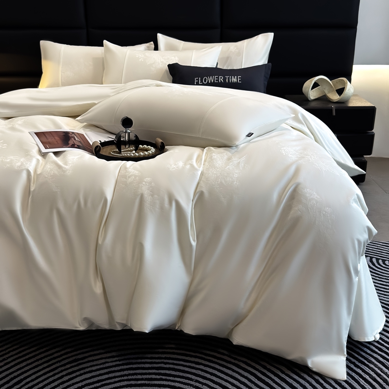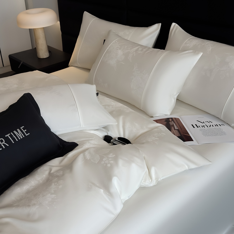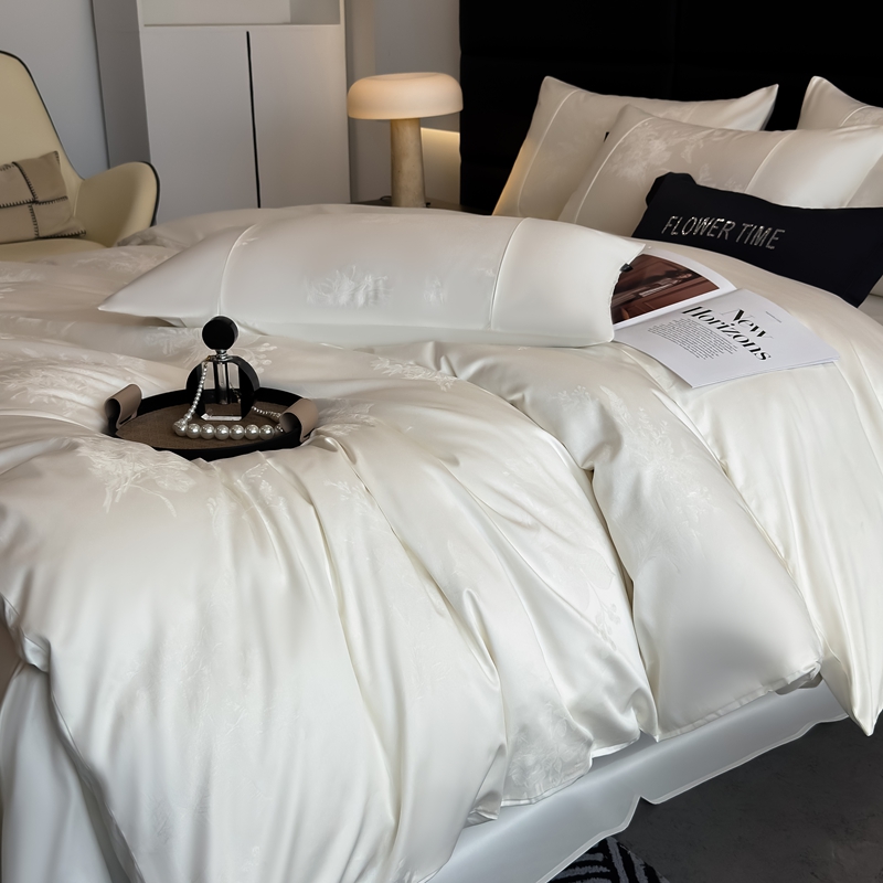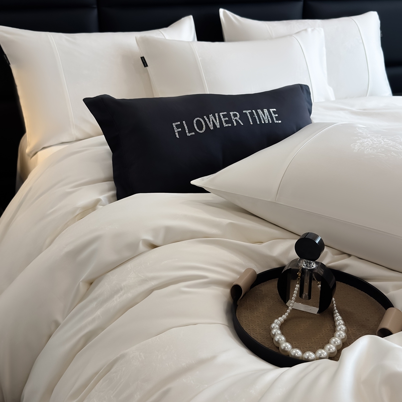 (总)花时间 2025秋冬新款简约贡缎提花四件套 繁悦系列,繁悦-皓月白,繁悦-奶霜色
