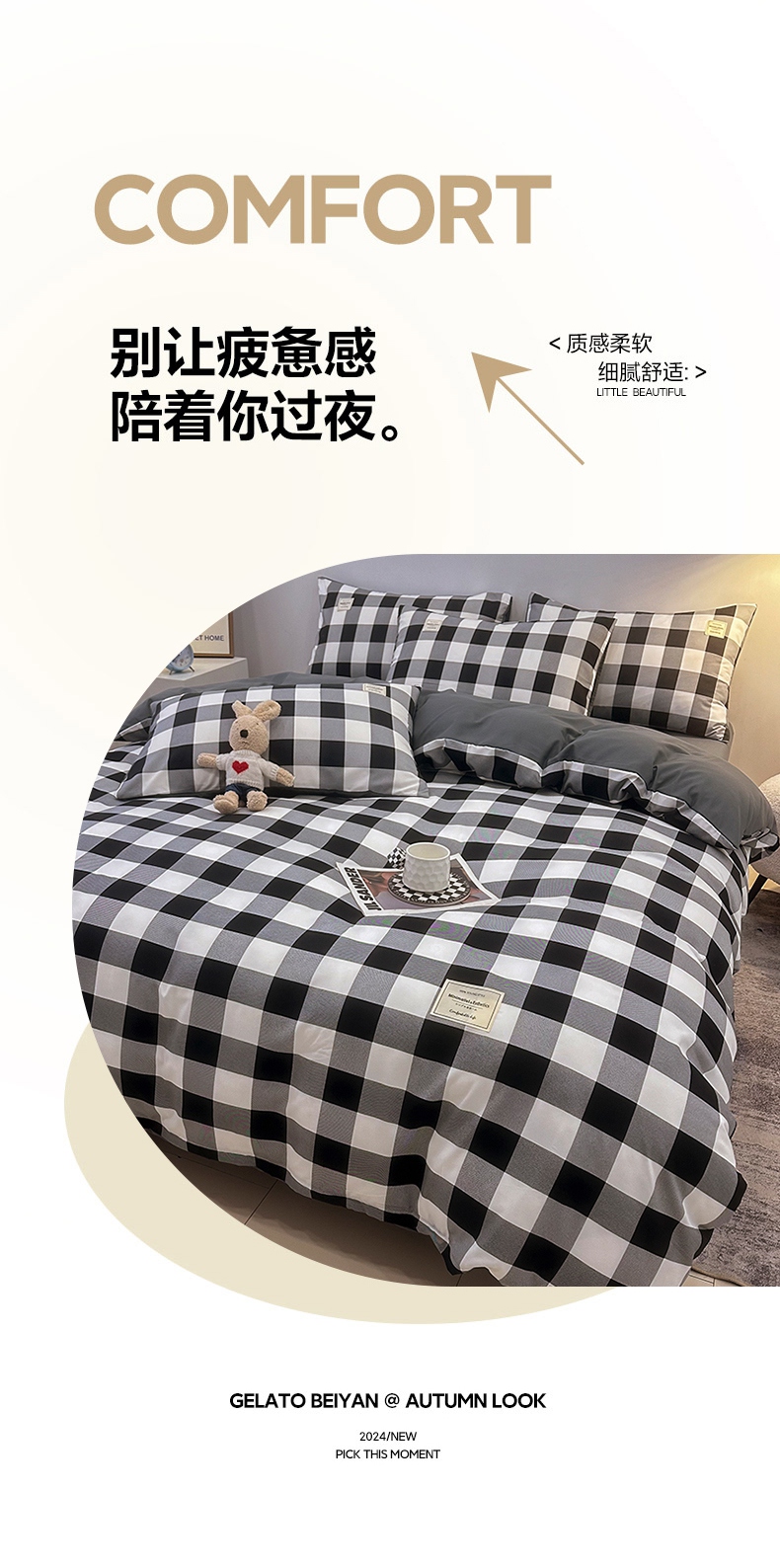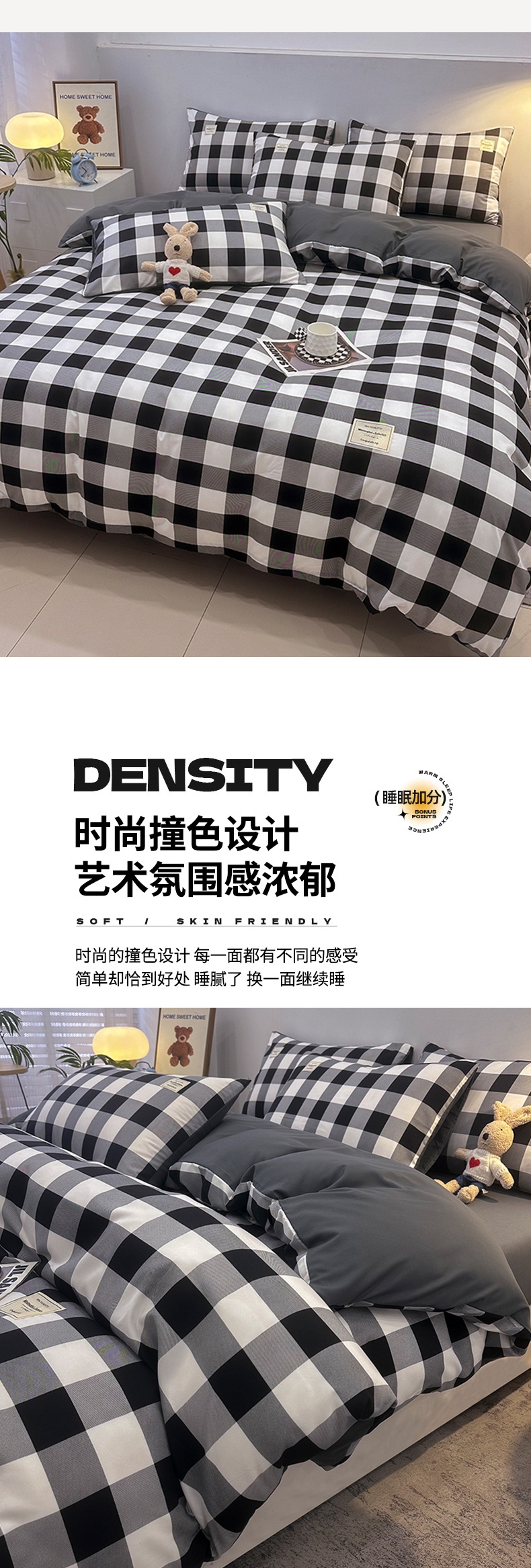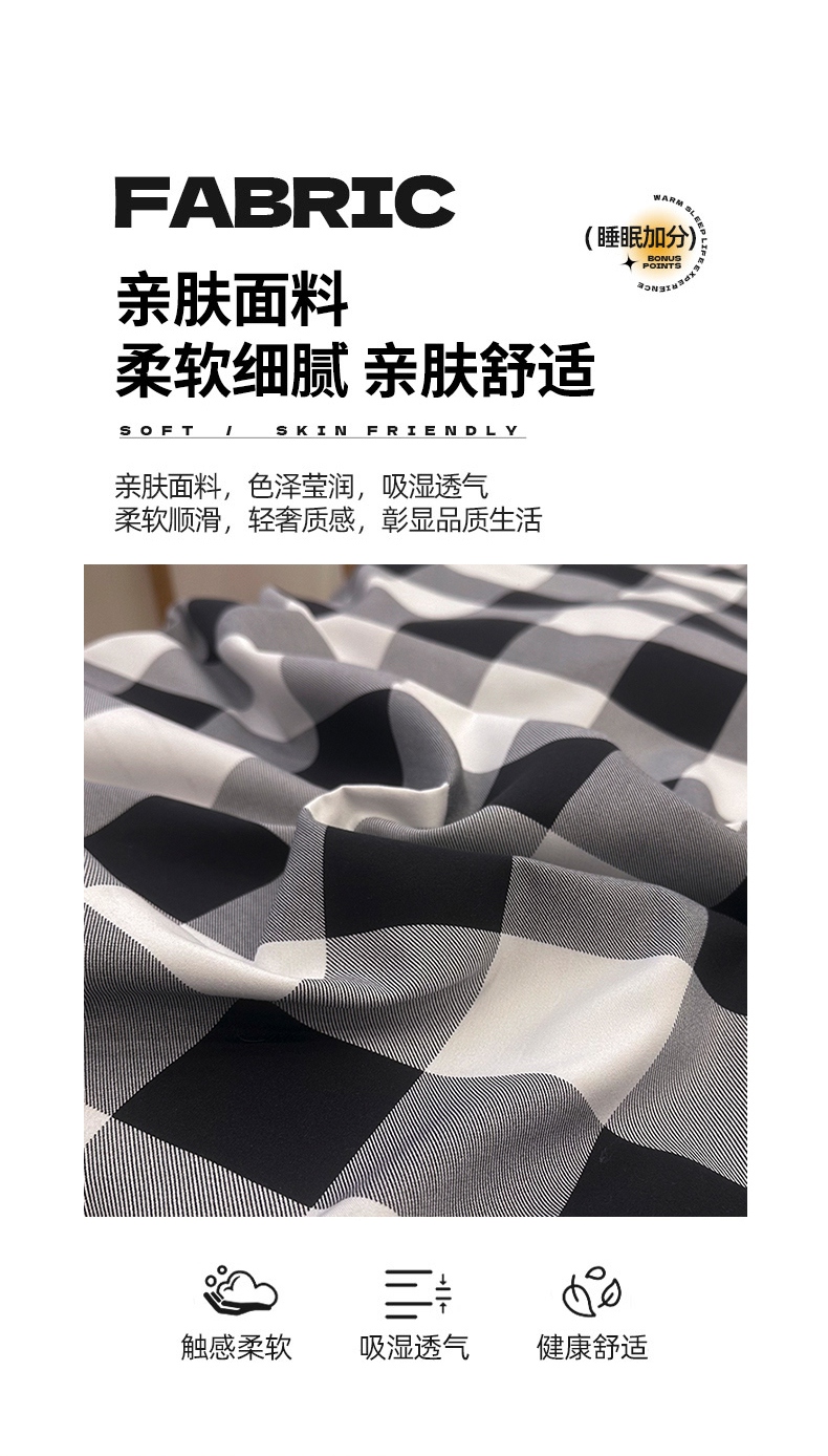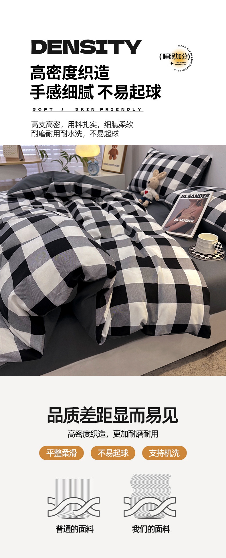 当前位置: 91家纺网 > 商品网购 > 床品套件 > 四件套 > 普通磨毛四件套 > 优纤家纺 2025新款简约亲肤四件套床单床笠学生三件套-格子条纹系列 黑白大格