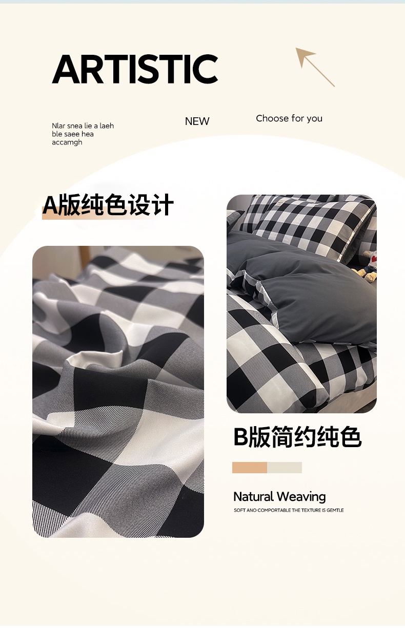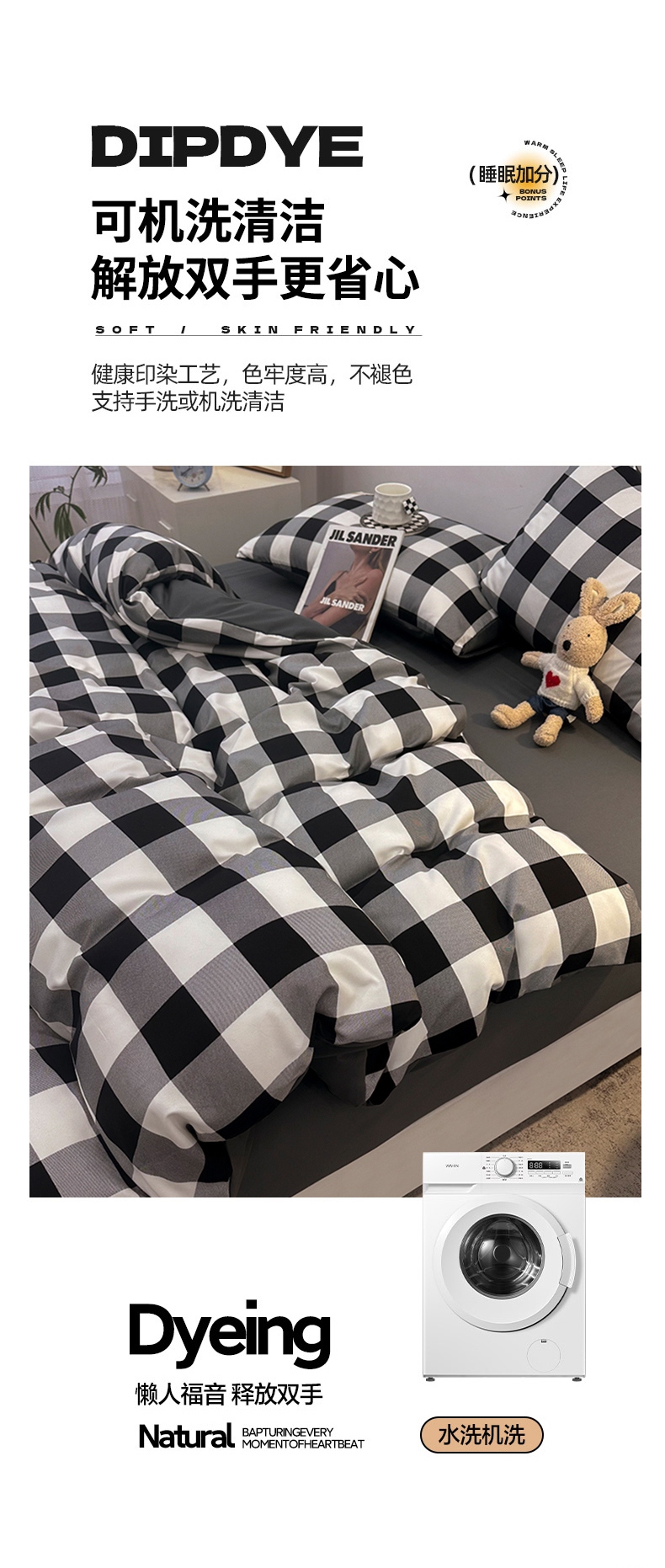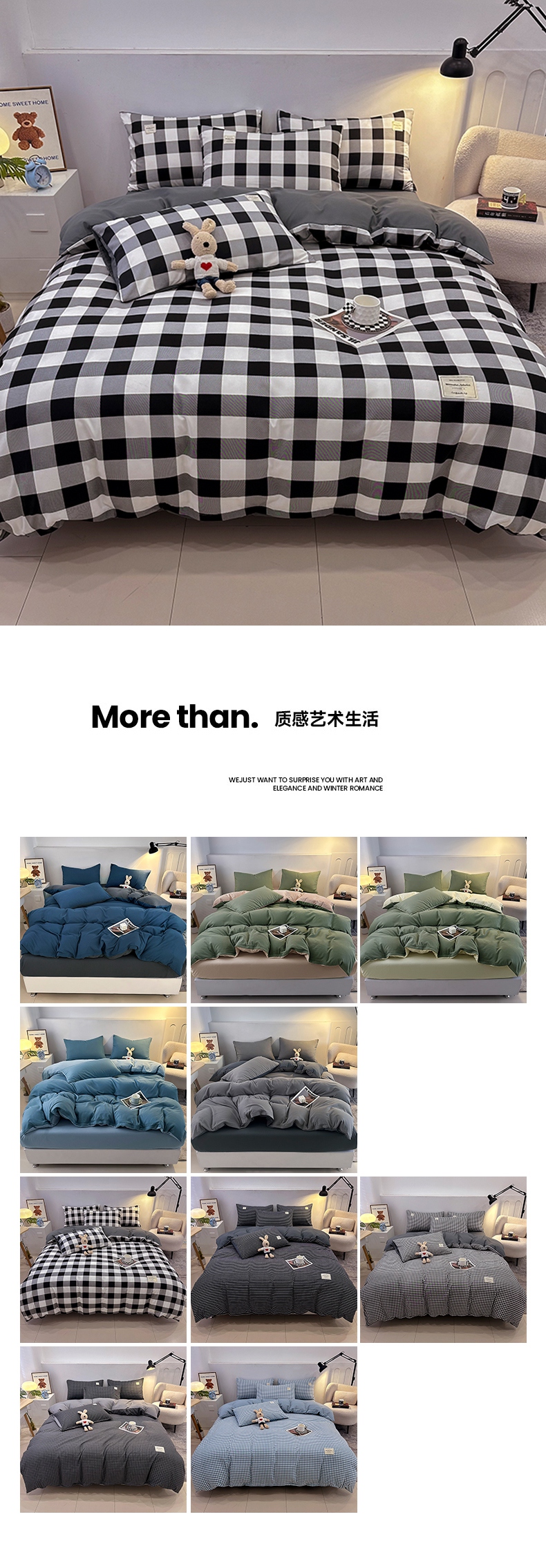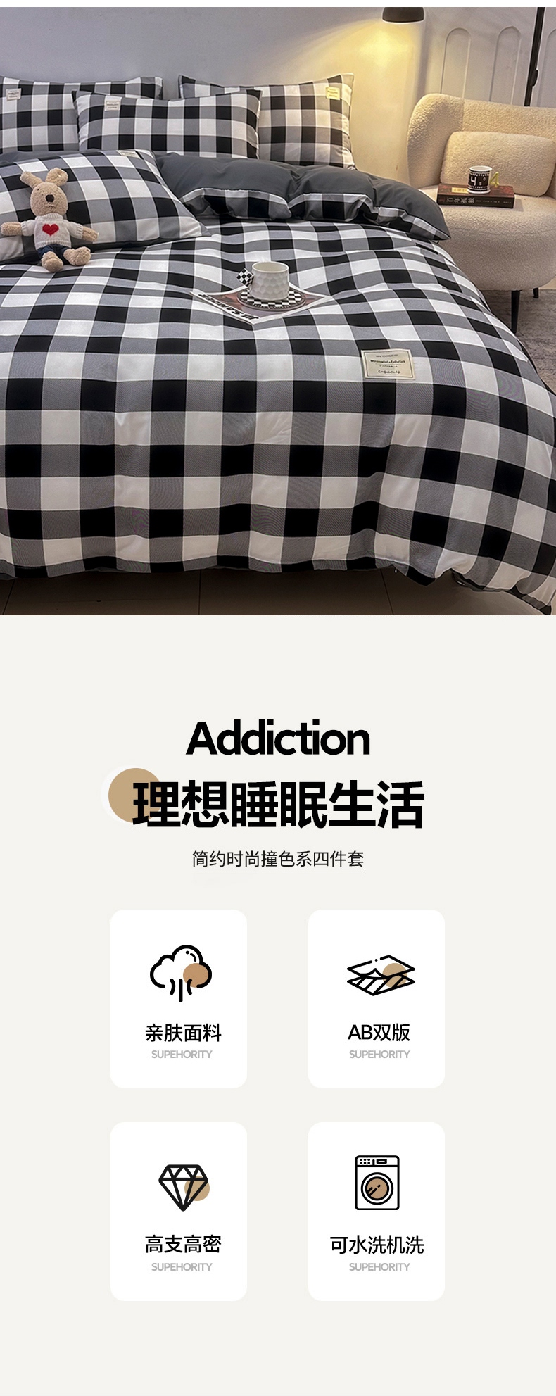 当前位置: 91家纺网 > 商品网购 > 床品套件 > 四件套 > 普通磨毛四件套 > 优纤家纺 2025新款简约亲肤四件套床单床笠学生三件套-格子条纹系列 黑白大格